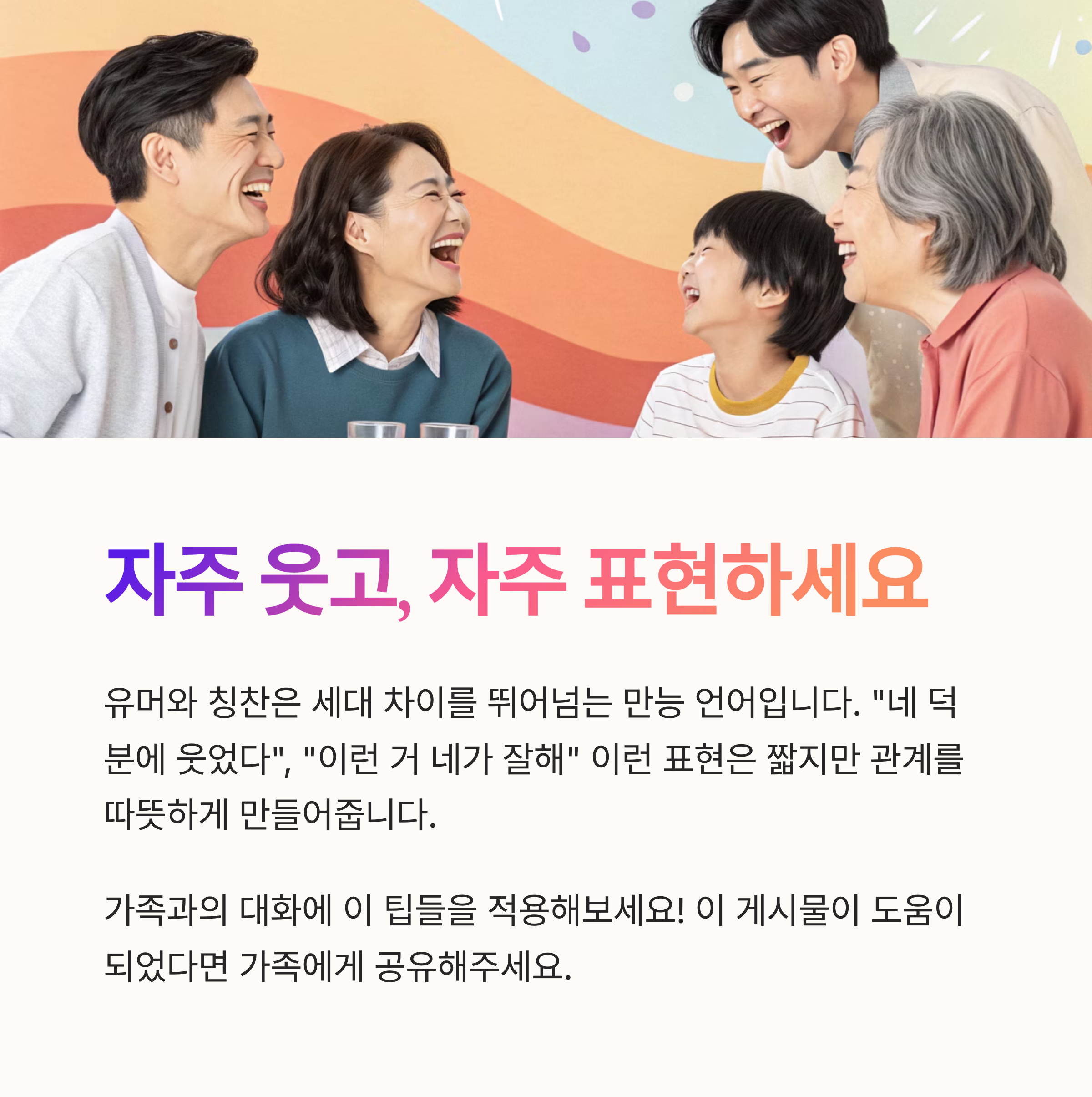 유머와 칭찬은 세대 차이를 뛰어넘는 만능 언어입니다