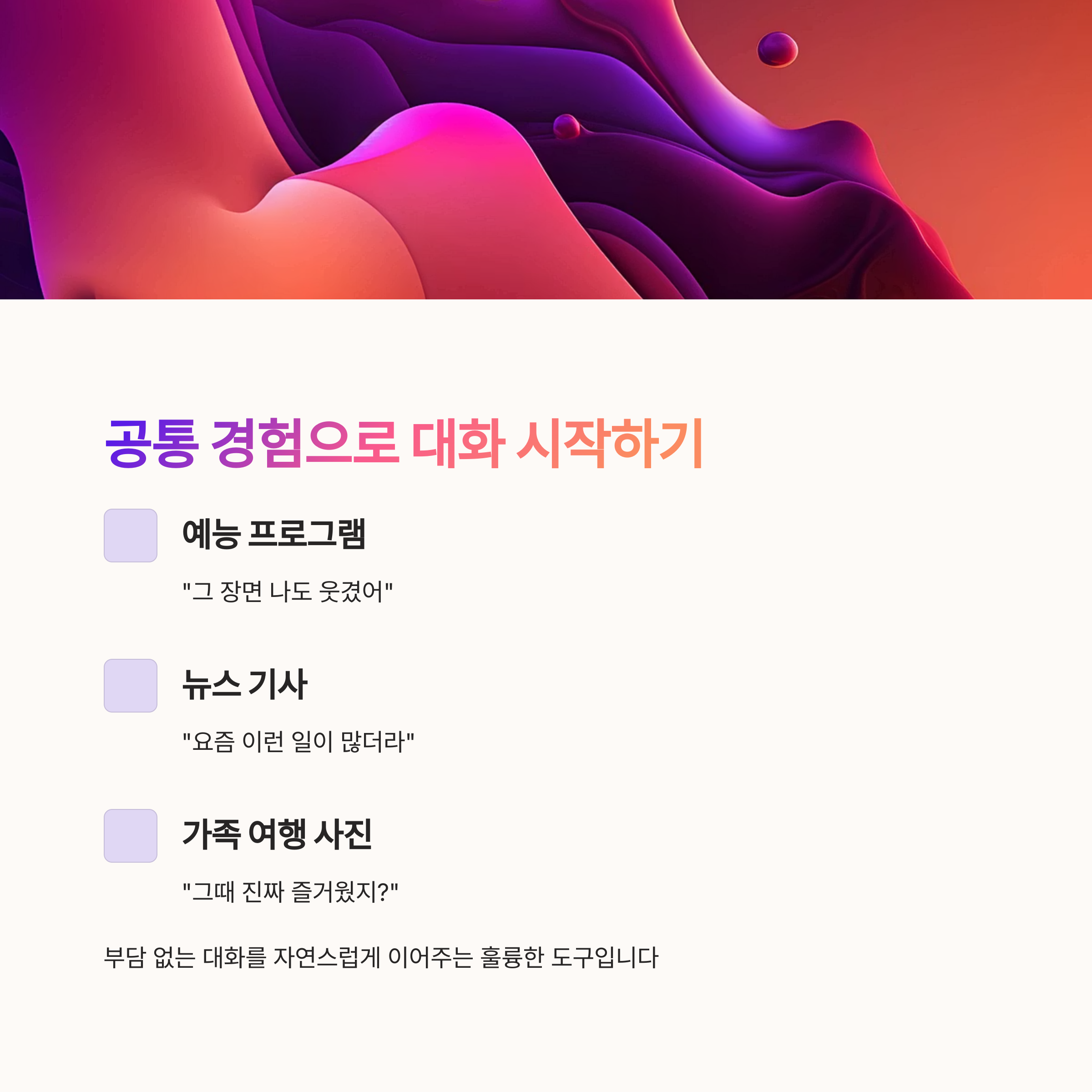 부담 없는 대화를 자연스럽게 이어주는 훌륭한 도구입니다