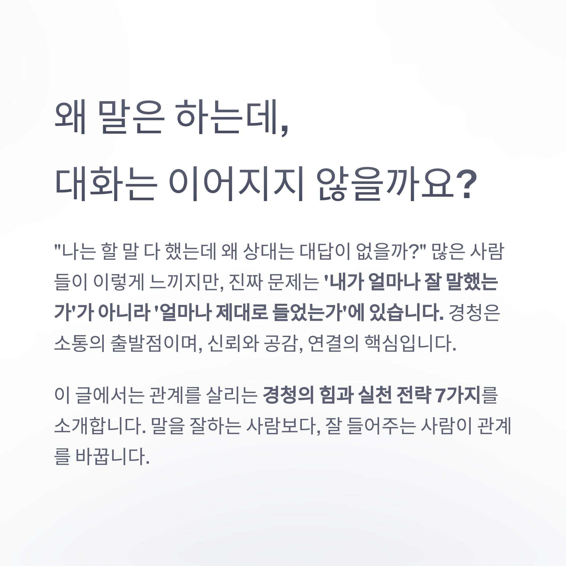 진짜 문제는 ‘내가 얼마나 잘 말했는가’가 아니라 ‘얼마나 제대로 들었는가’에 있습니다.