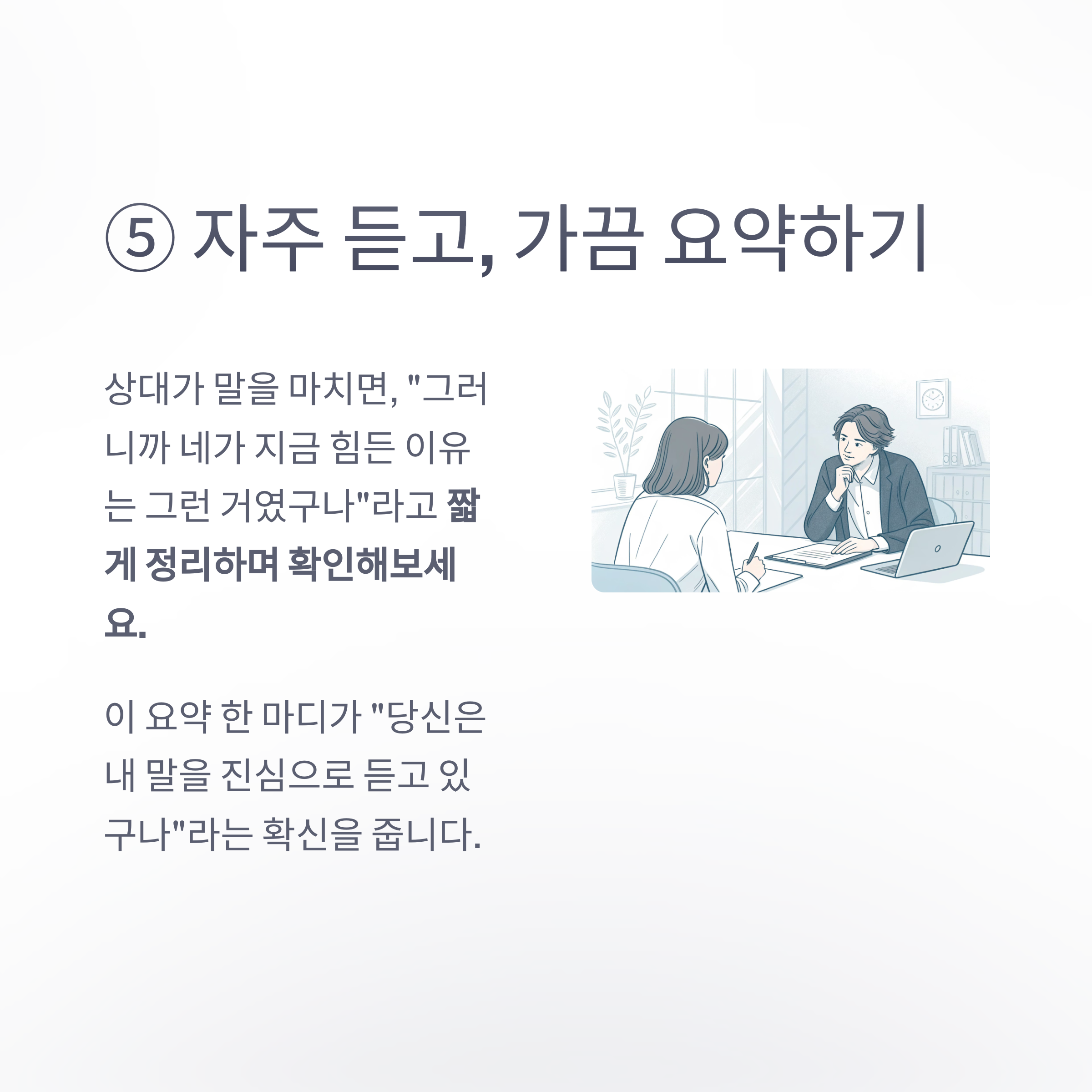 “끝까지 들어주는 사람”이 되기 위한 가장 기본적인 습관입니다.