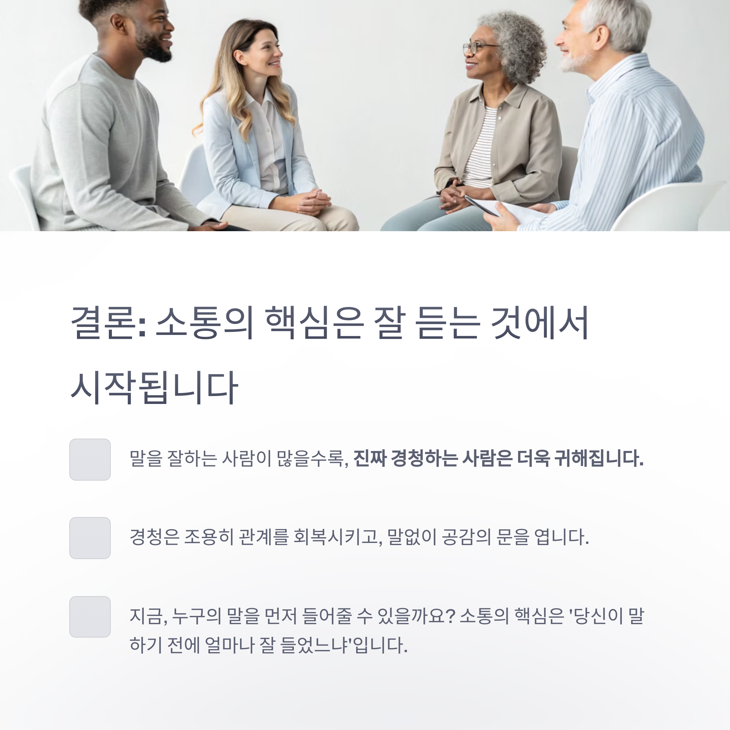 결론: 소통의 핵심은 잘 듣는 것에서 시작됩니다