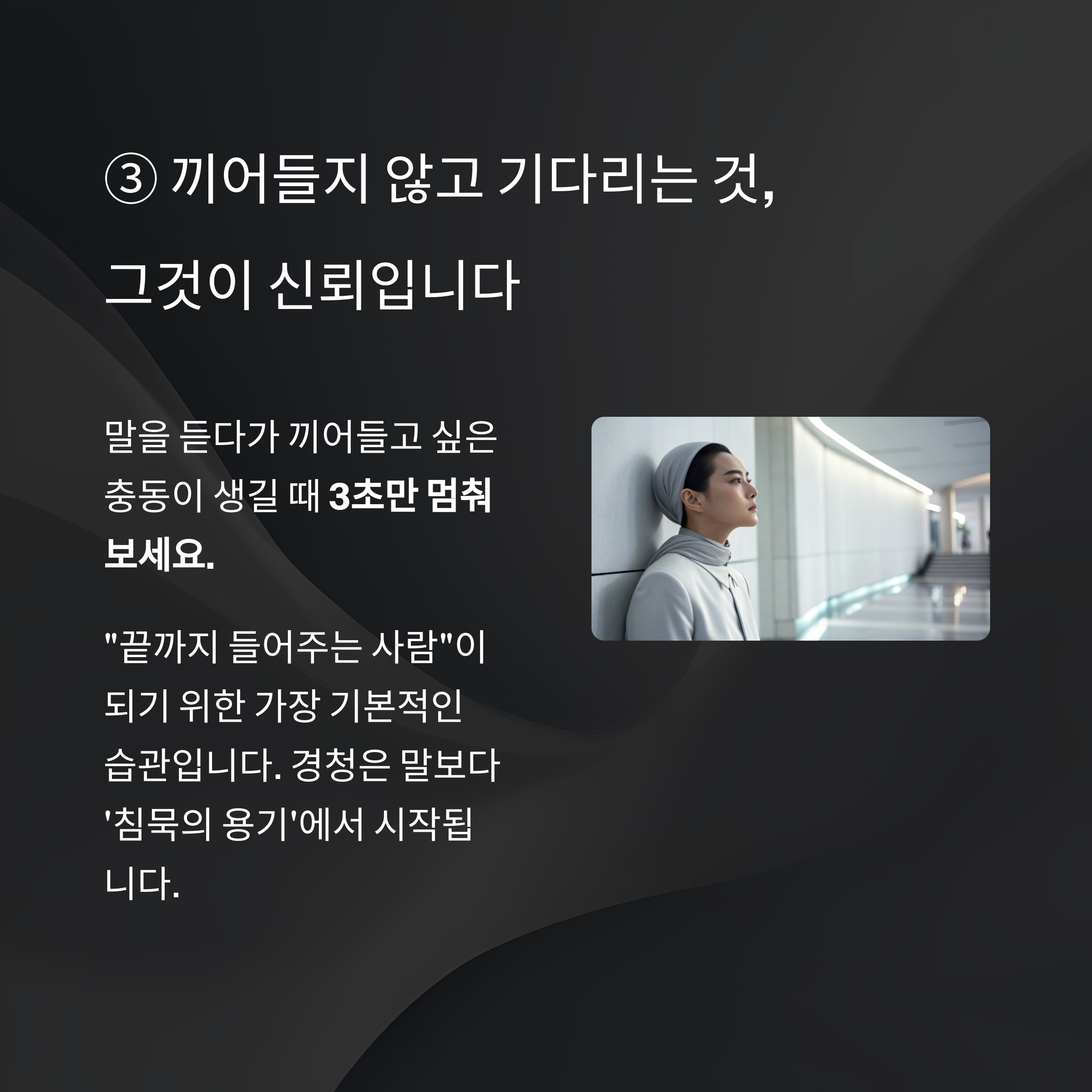 경청은 말보다 ‘침묵의 용기’에서 시작됩니다.