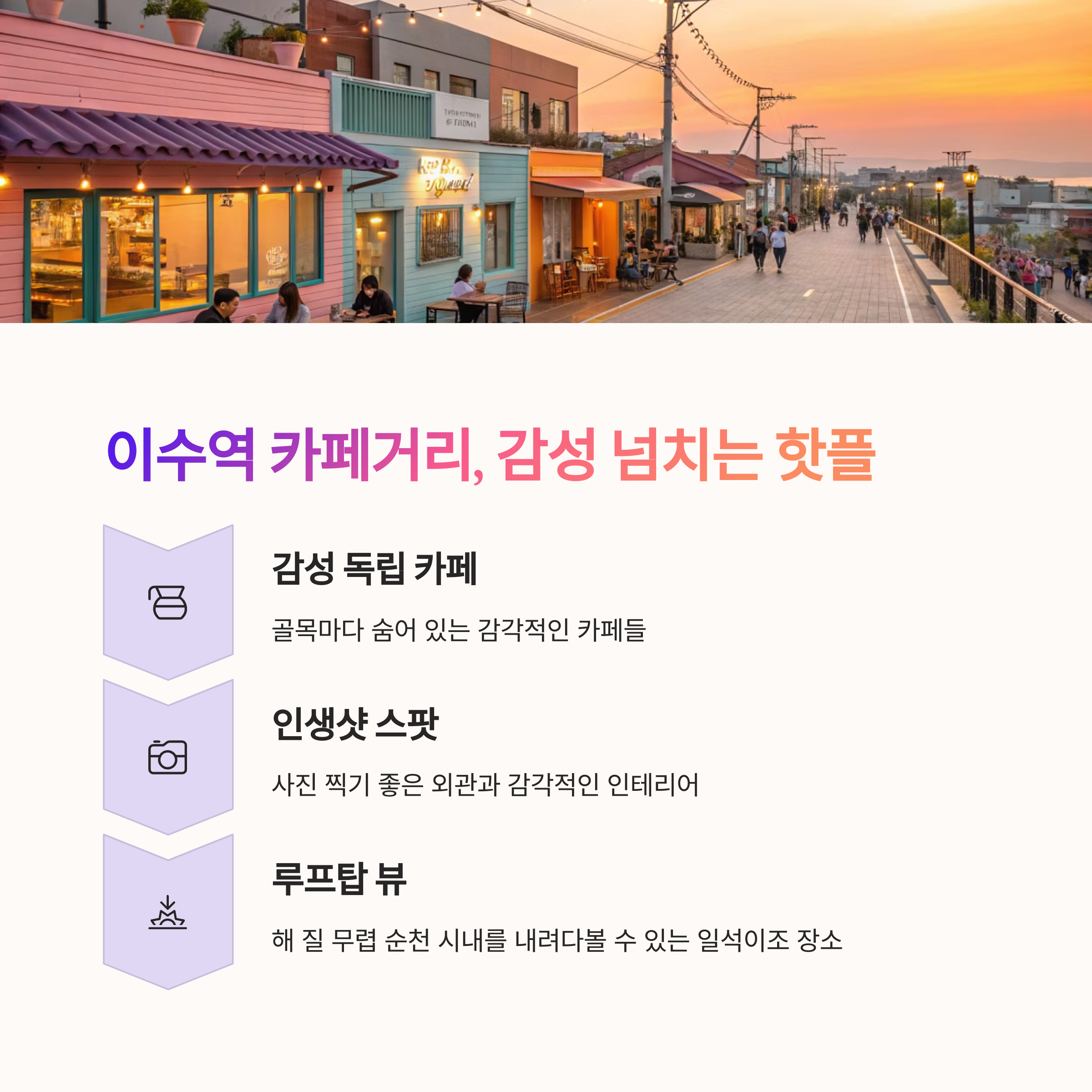 최근 SNS에서 핫하게 떠오른 곳은 바로 순천 이수역 근처 카페거리입니다.