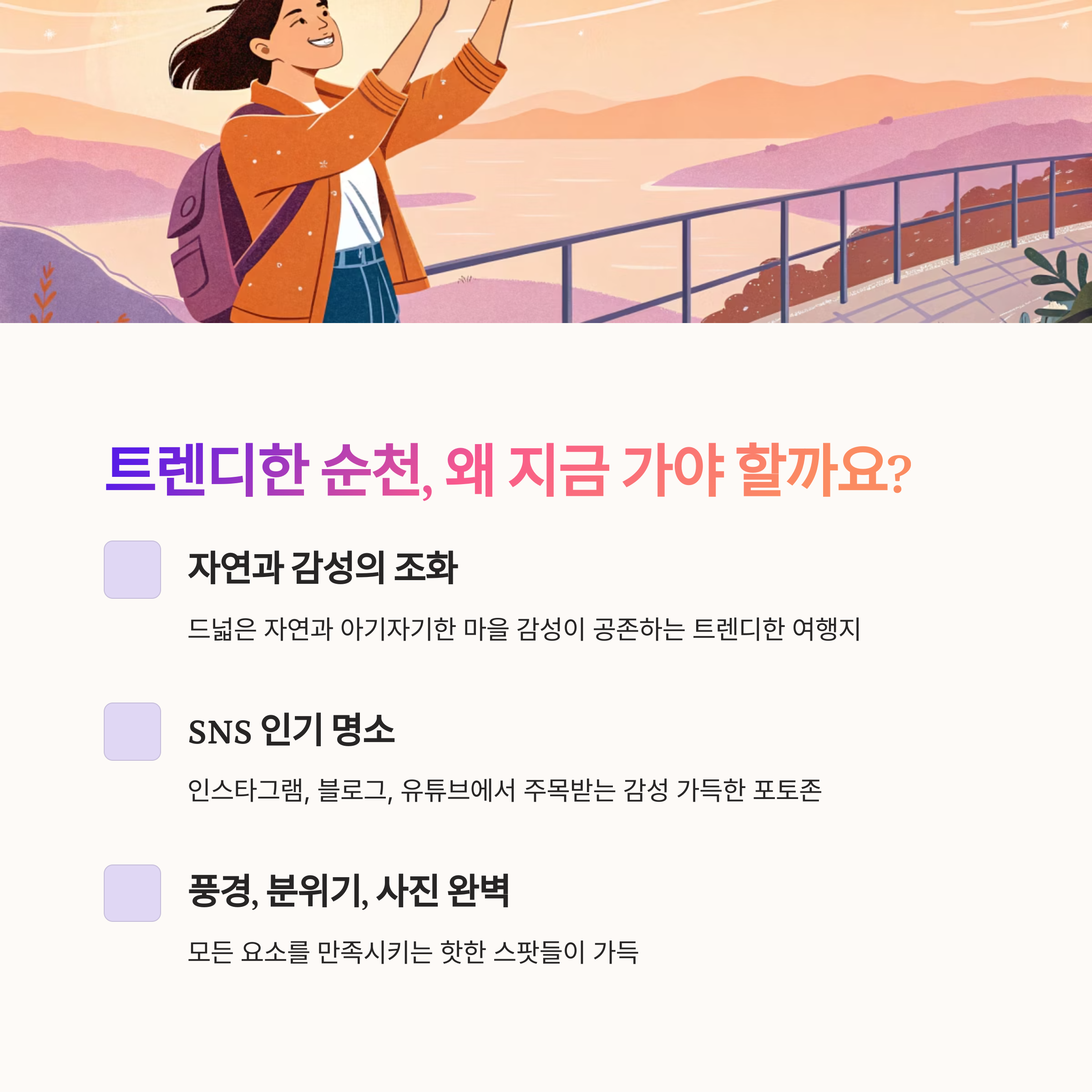 요즘 SNS에서 핫하게 떠오르는 순천 감성 스팟은 어디인가요?