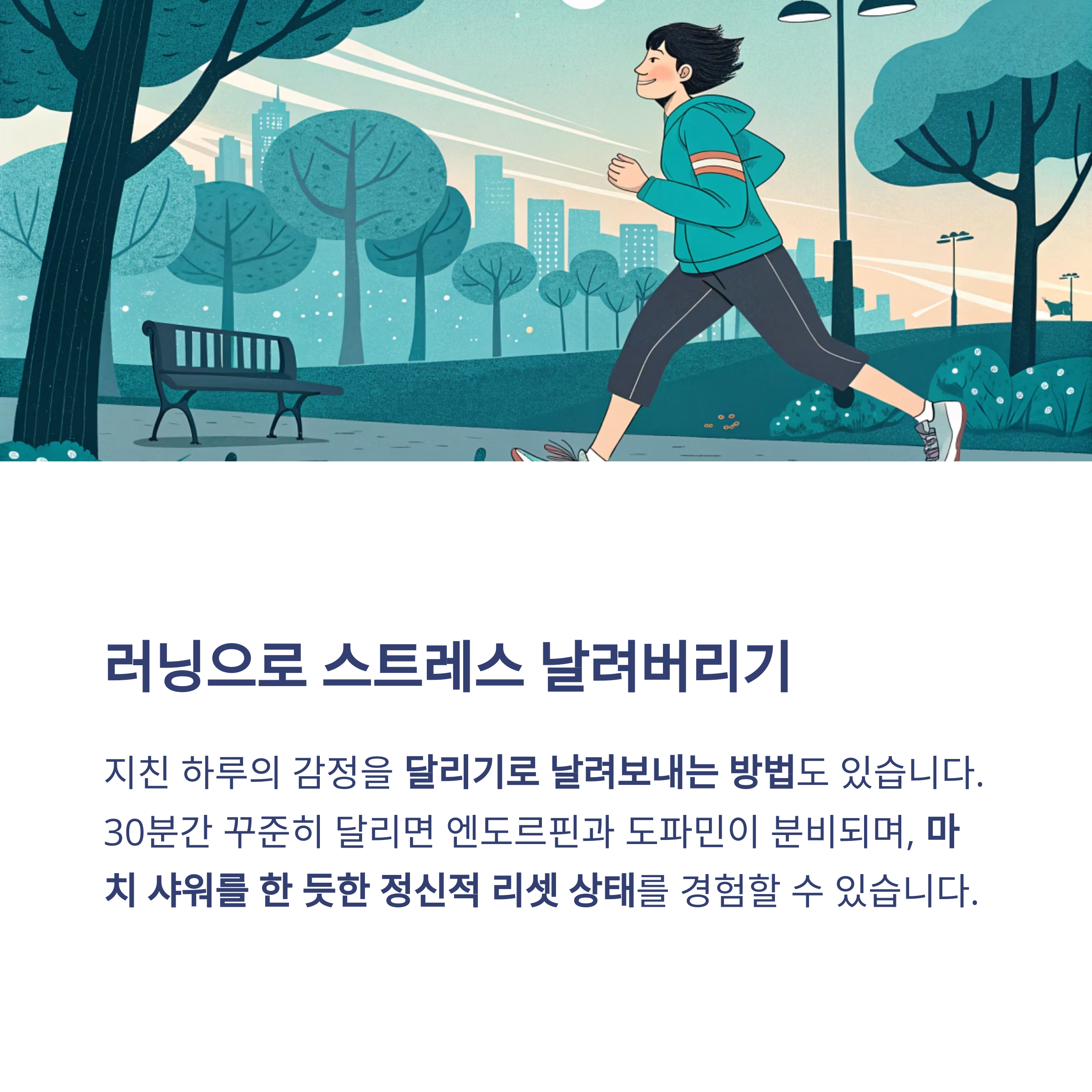 지친 하루의 감정을 달리기로 날려보내는 방법도 있습니다.