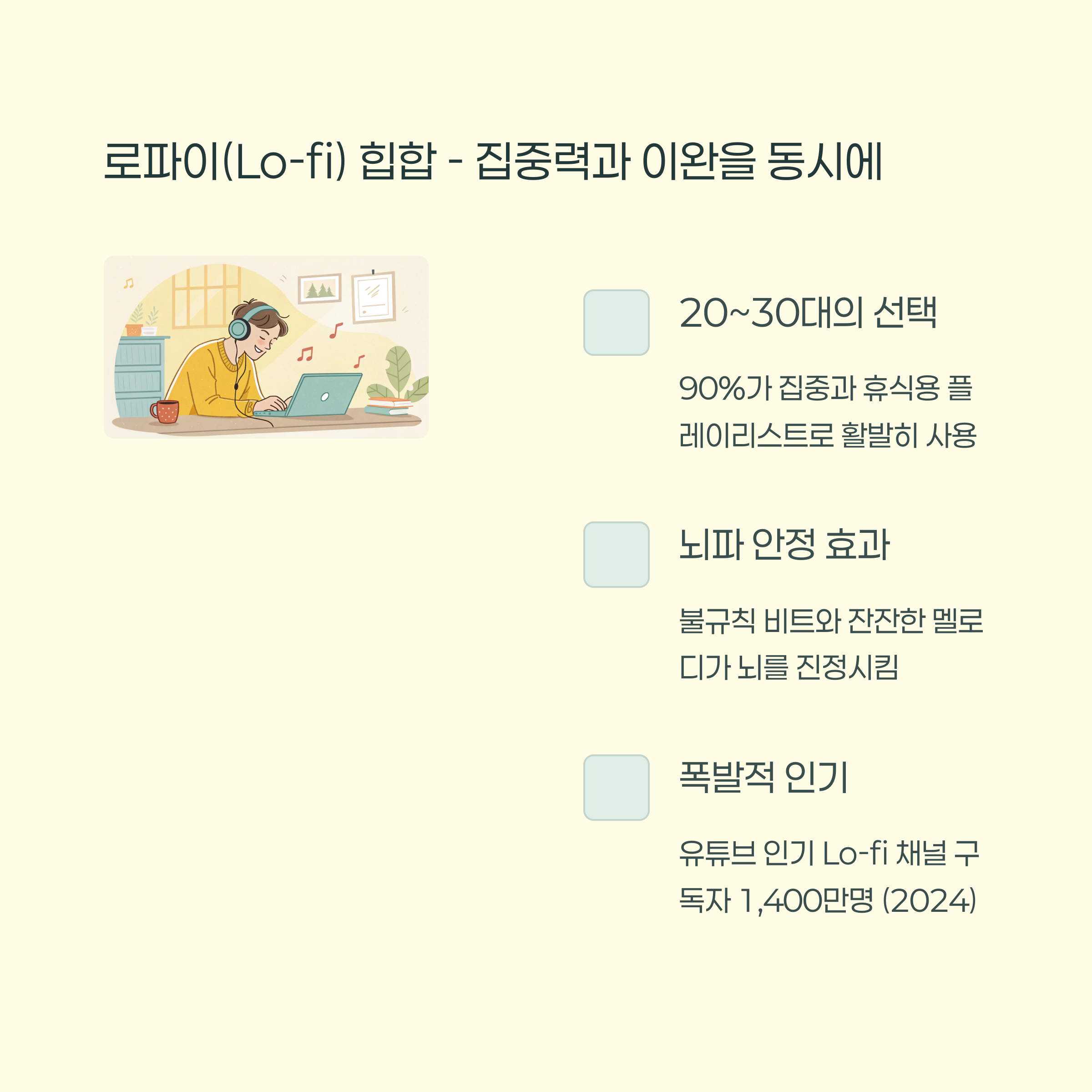 로파이(Lo-fi) 힙합 - 집중력과 이완을 동시에