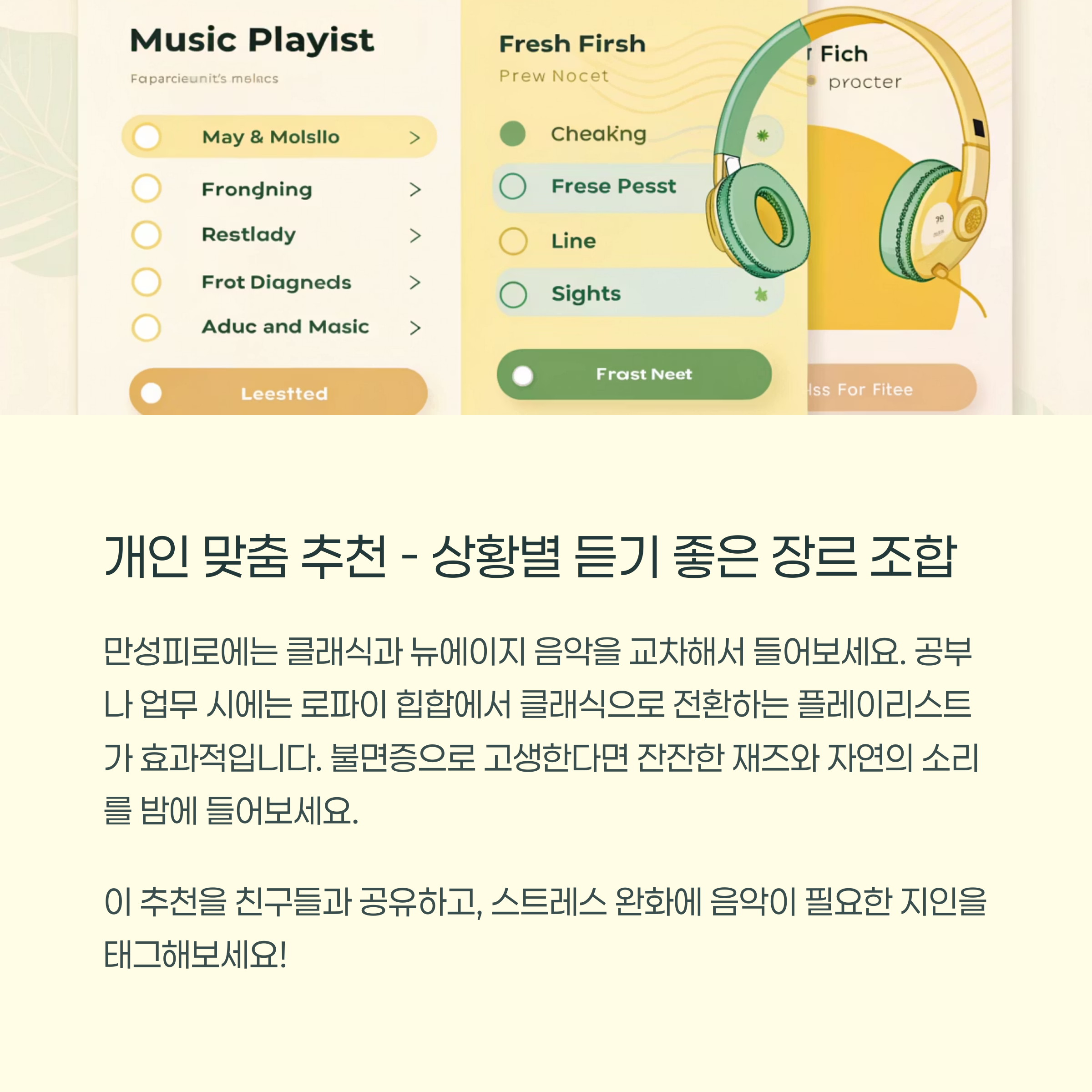 "내 기분에 맞는 음악 한 곡이 최고의 치유제"가 되어줄 거예요.