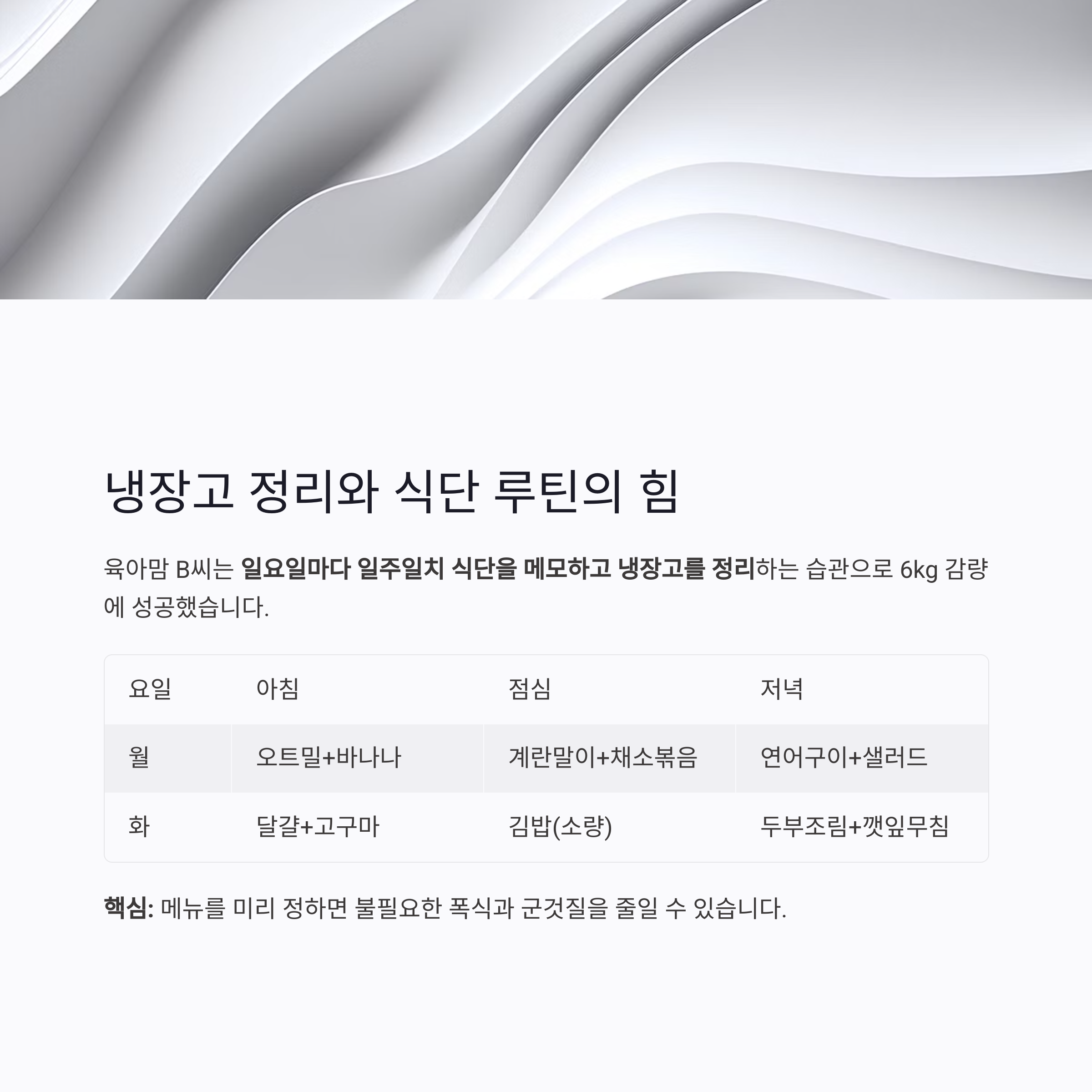 2. 육아맘 B씨, 냉장고 정리와 식단 루틴으로 체중 6kg 감량