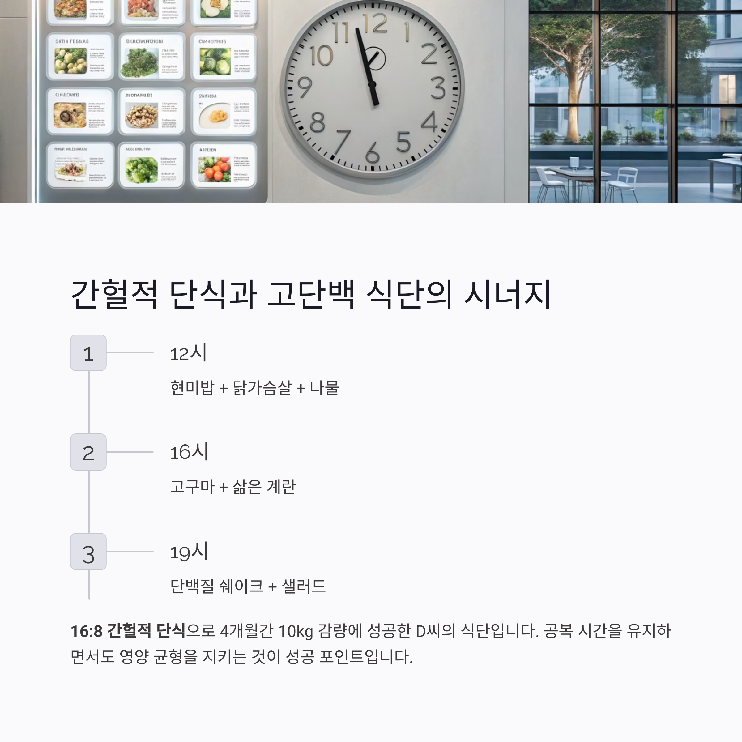 4. 헬스 초보 D씨, 간헐적 단식 + 고단백 식단 병행