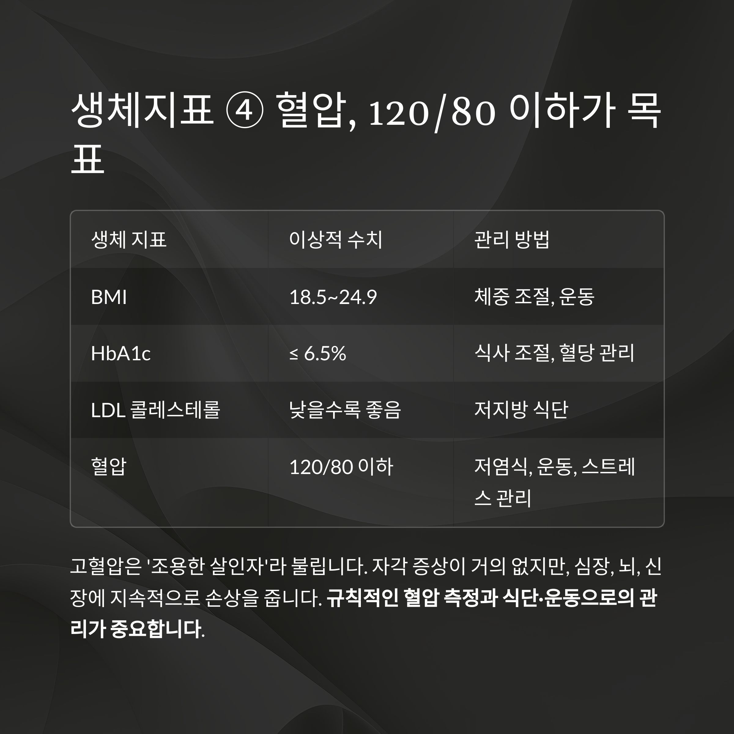 생체 지표 이상적 수치 관리 방법