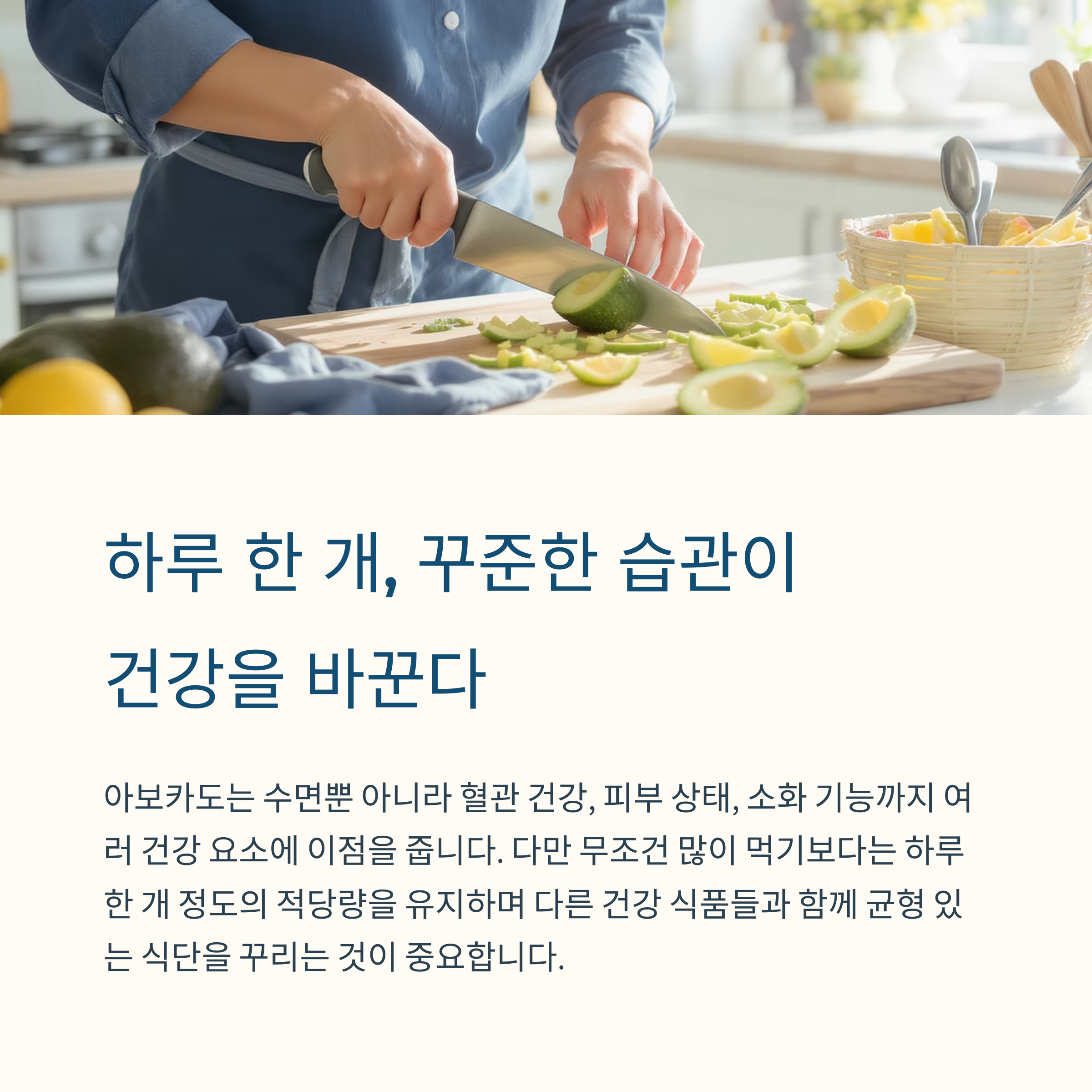 아보카도는 수면뿐 아니라 혈관 건강, 피부 상태,