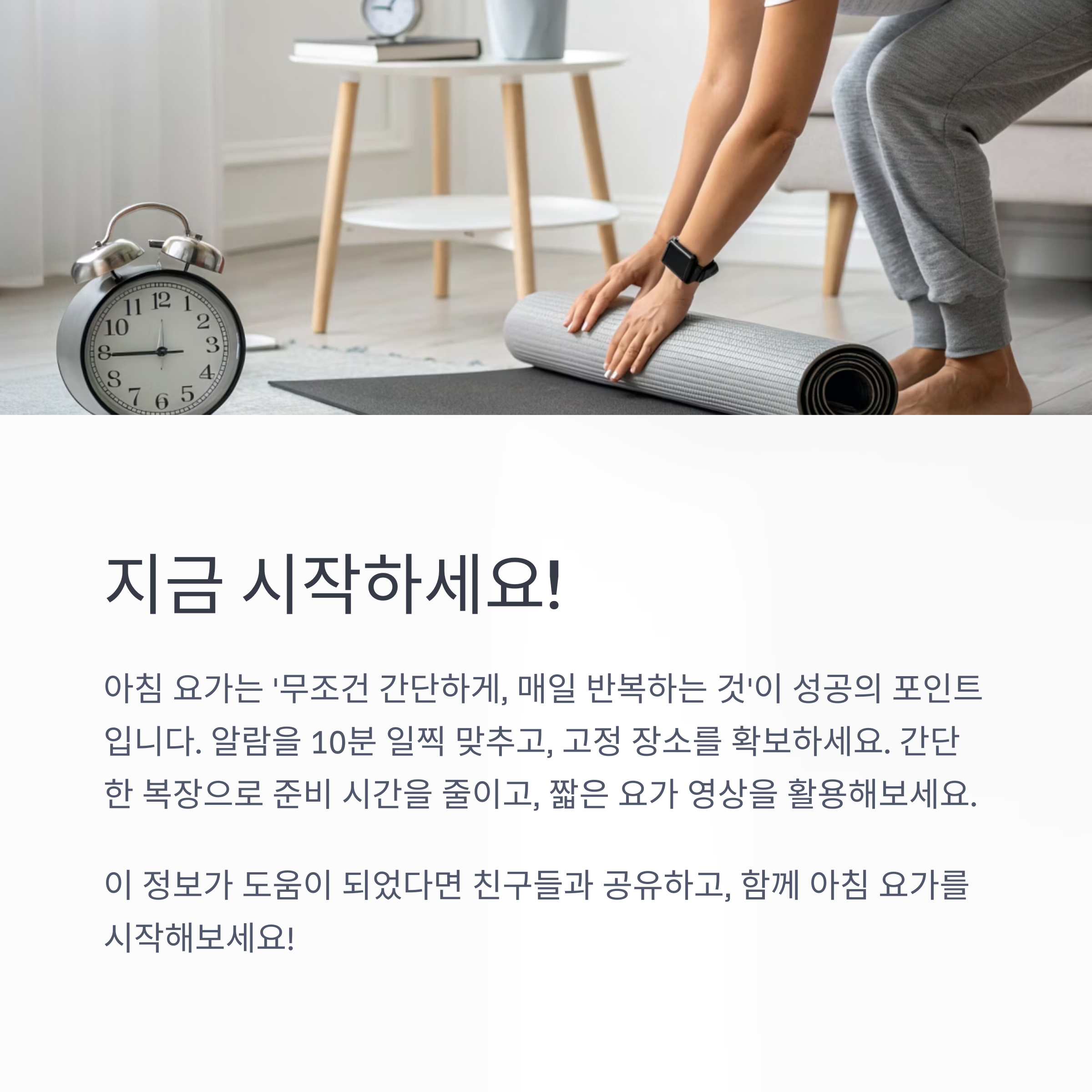 핵심: 아침 요가는 ‘무조건 간단하게, 매일 반복하는 것’이 성공의 포인트입니다.