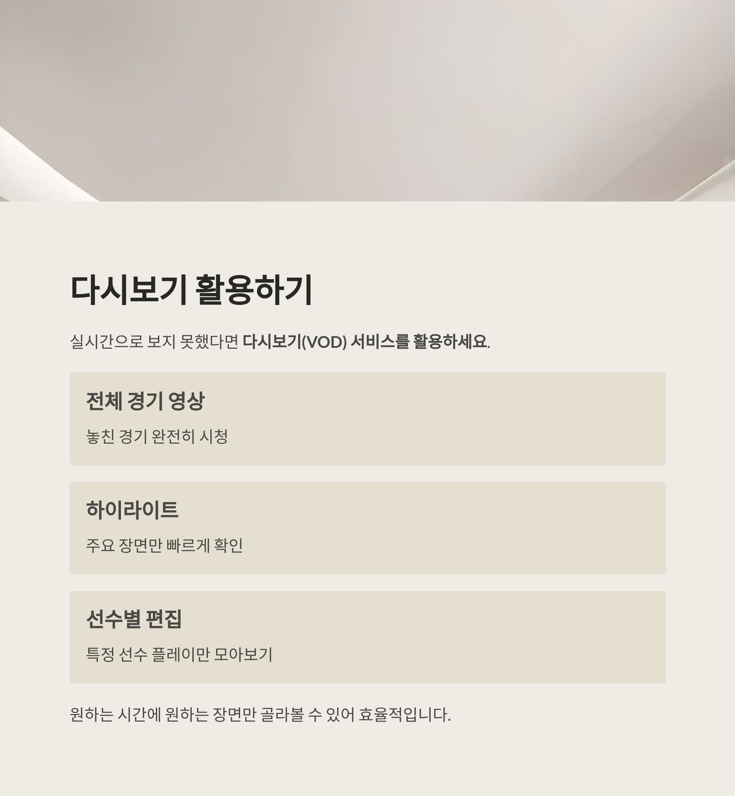 - 다양한 경기 다시보기 기능 포함