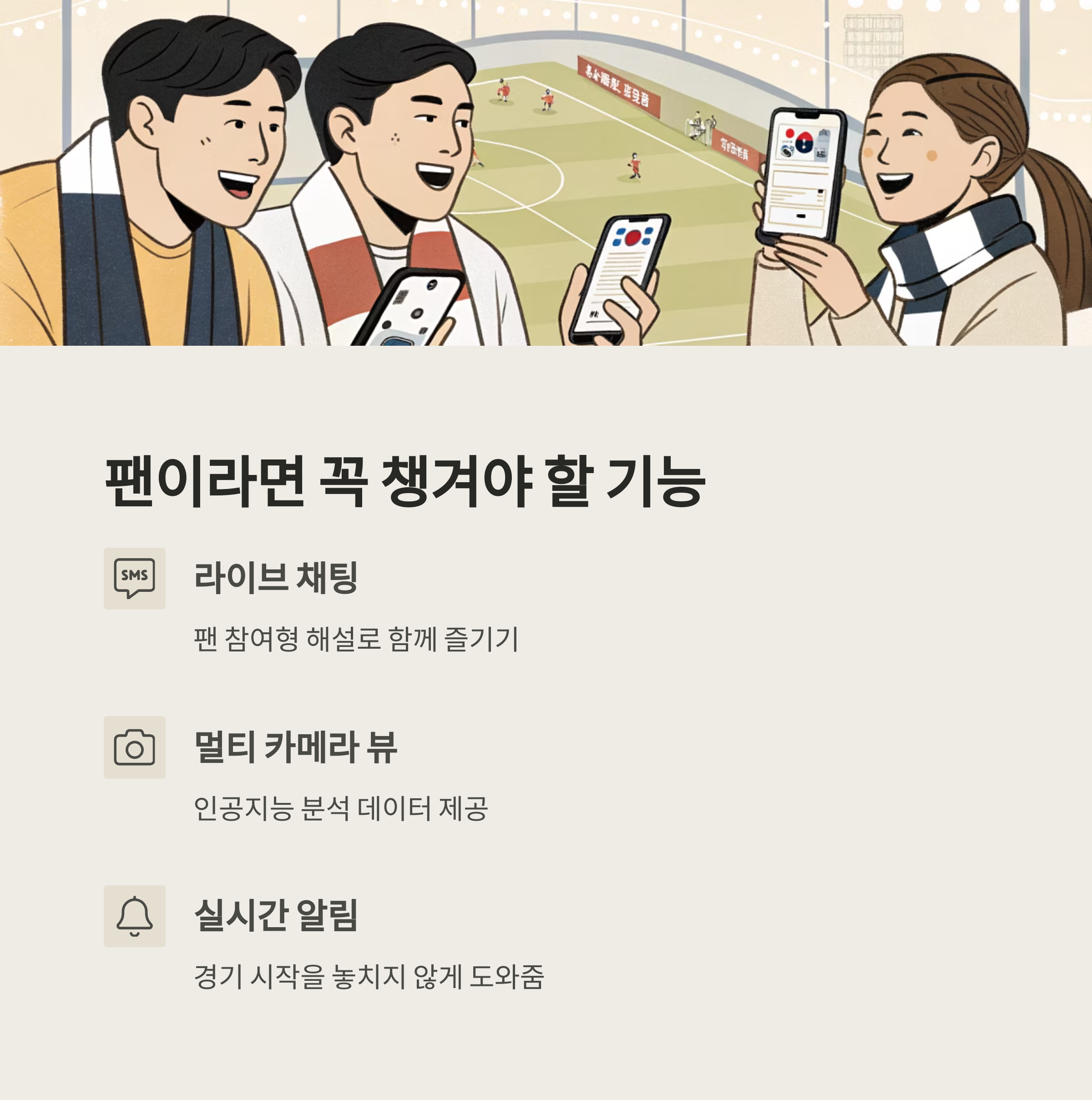 - 실시간 알림 기능으로 경기 시작을 놓치지 않게