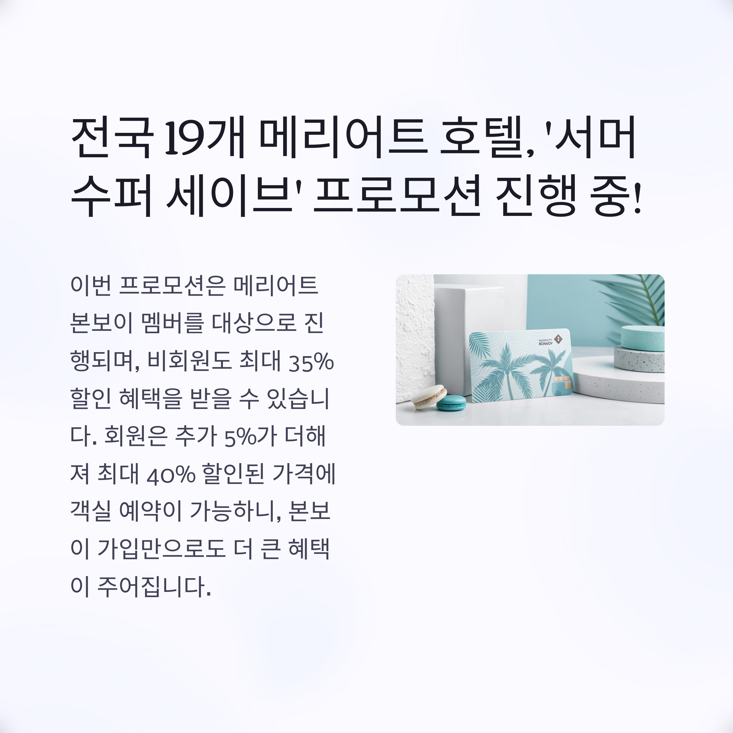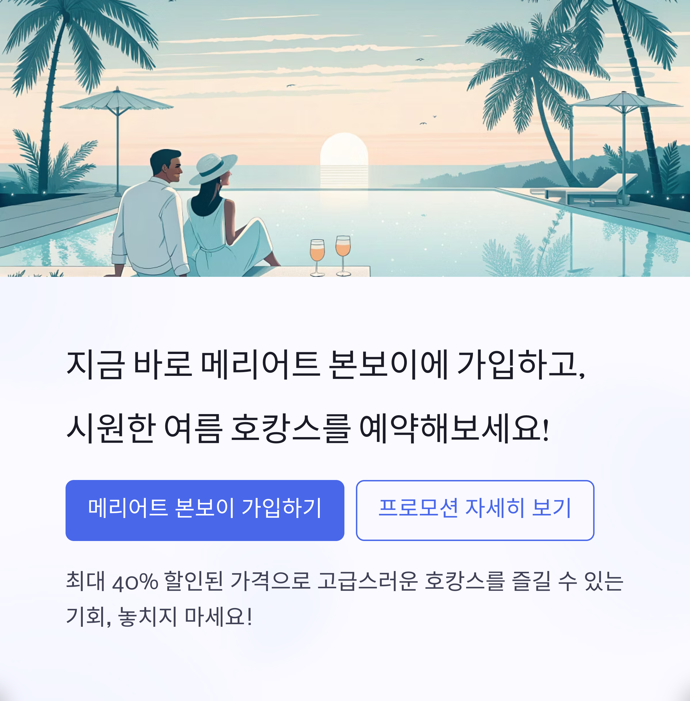 지금 바로 메리어트 본보이에 가입하고, 시원한 여름 호캉스를 예약해보세요!