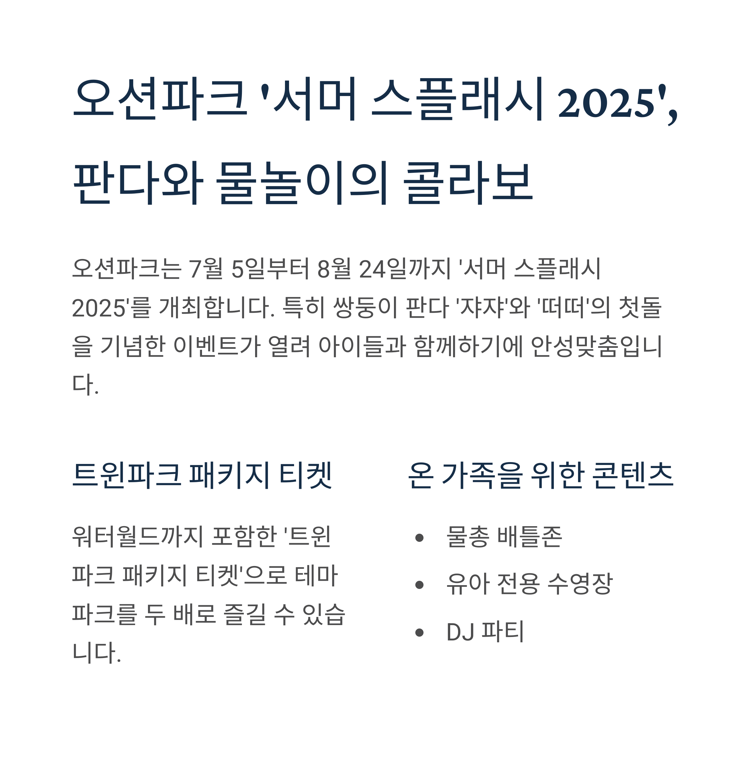 오션파크 ‘서머 스플래시 2025’, 판다와 물놀이의 콜라보
