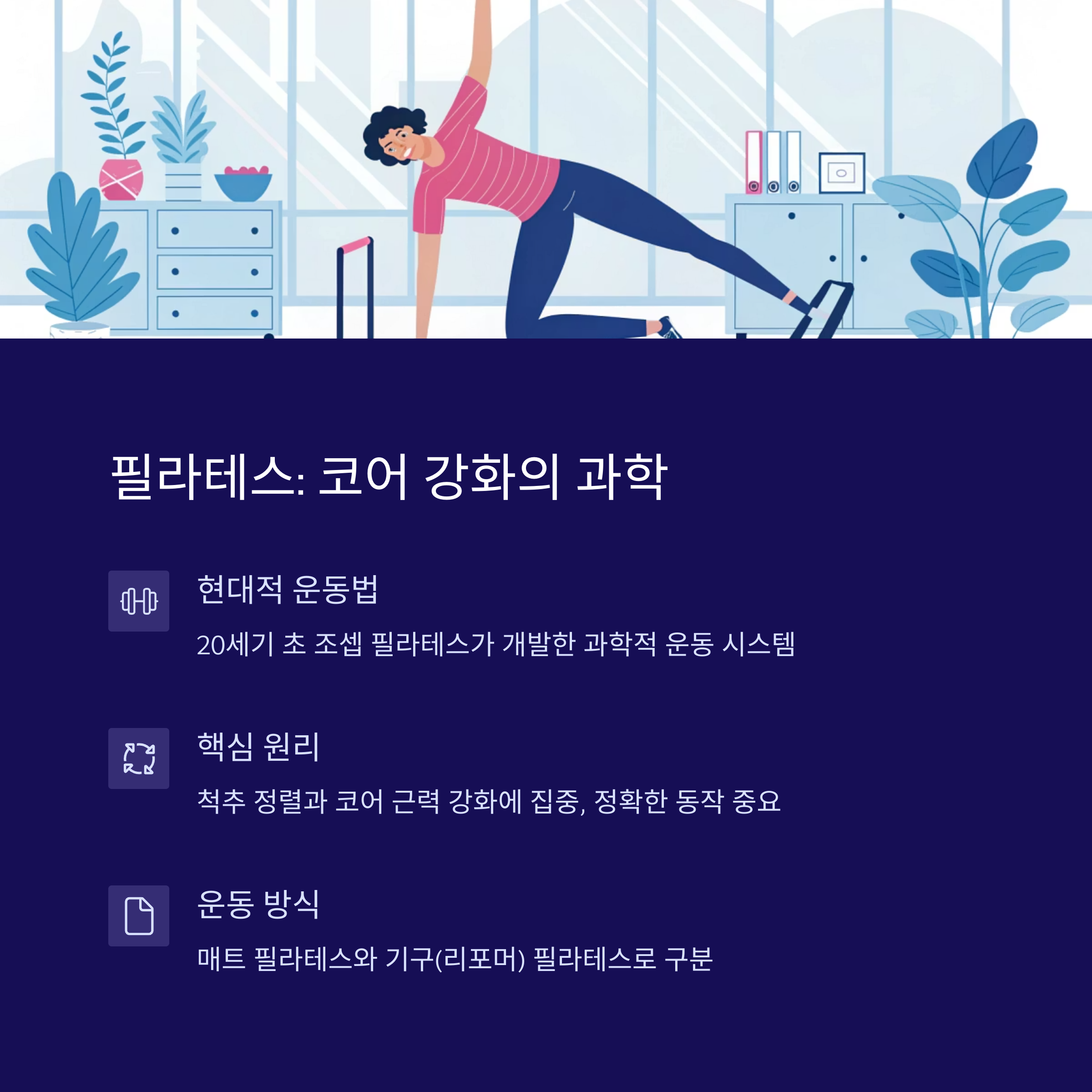 필라테스는 코어 강화, 체형 교정, 근력 향상에 효과적입니다