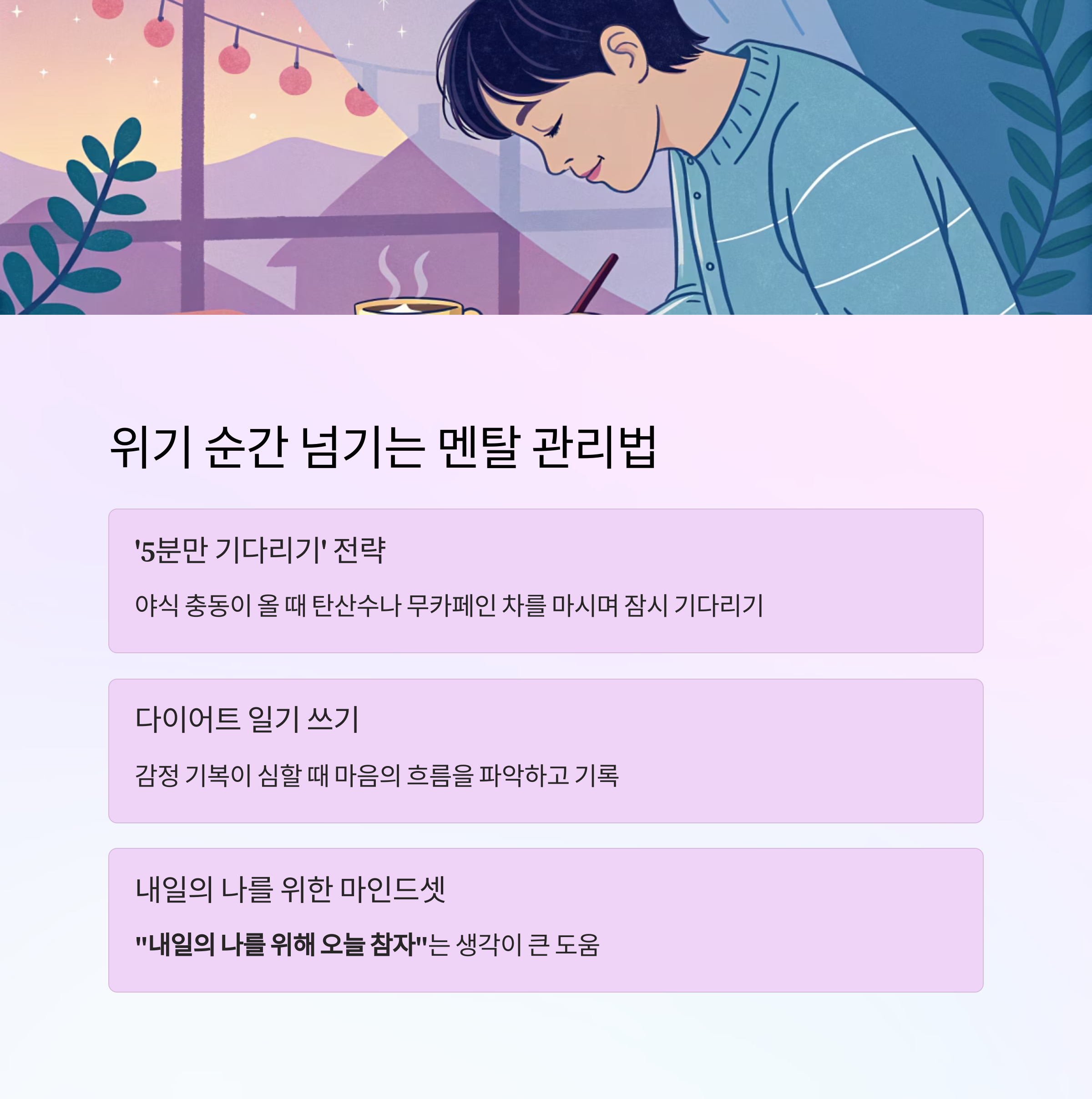 "내일의 나를 위해 오늘 참자"는 마인드셋이 큰 도움이 됐습니다.