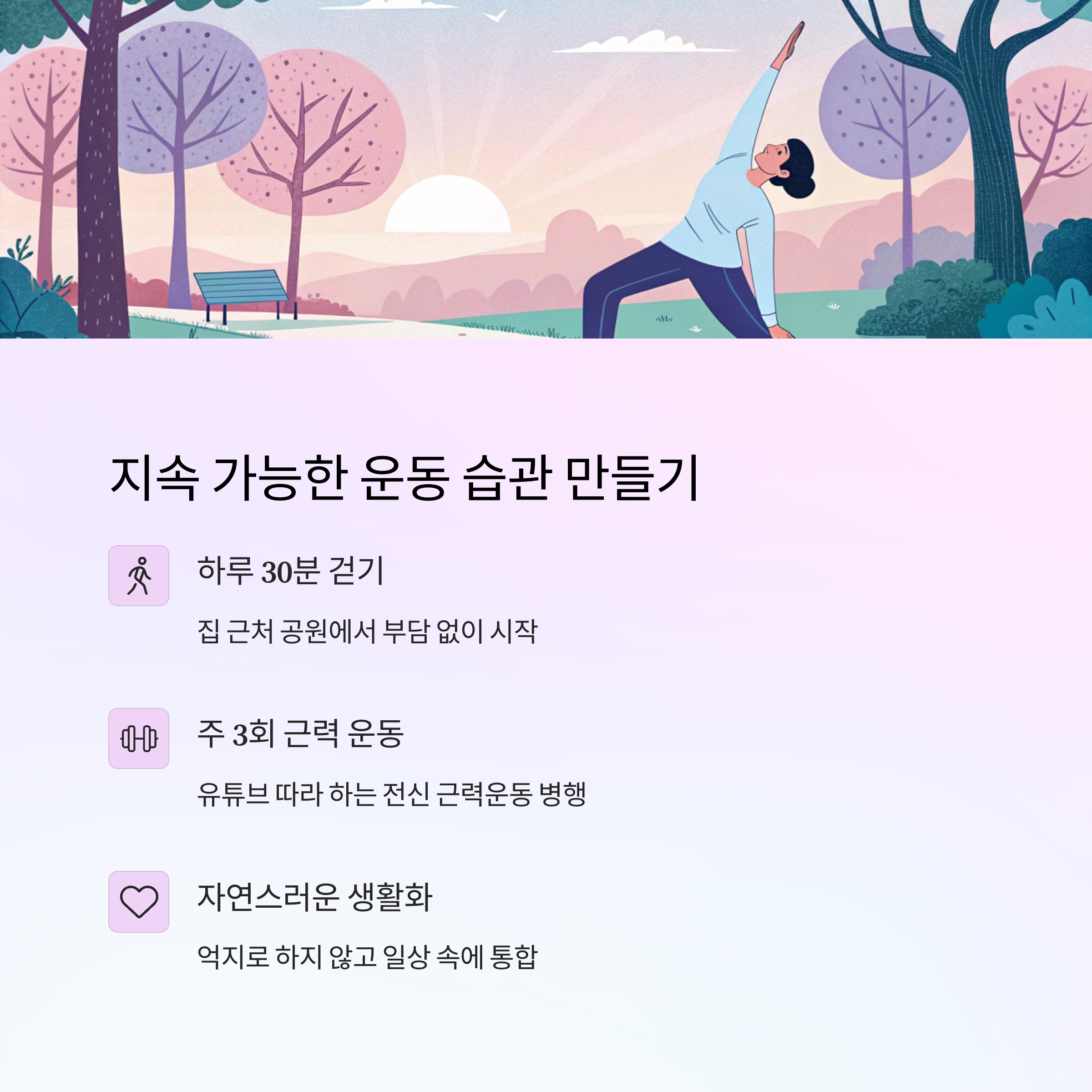 운동을 억지로 하지 않고 생활 속에서 자연스럽게 만든 점이었습니다.