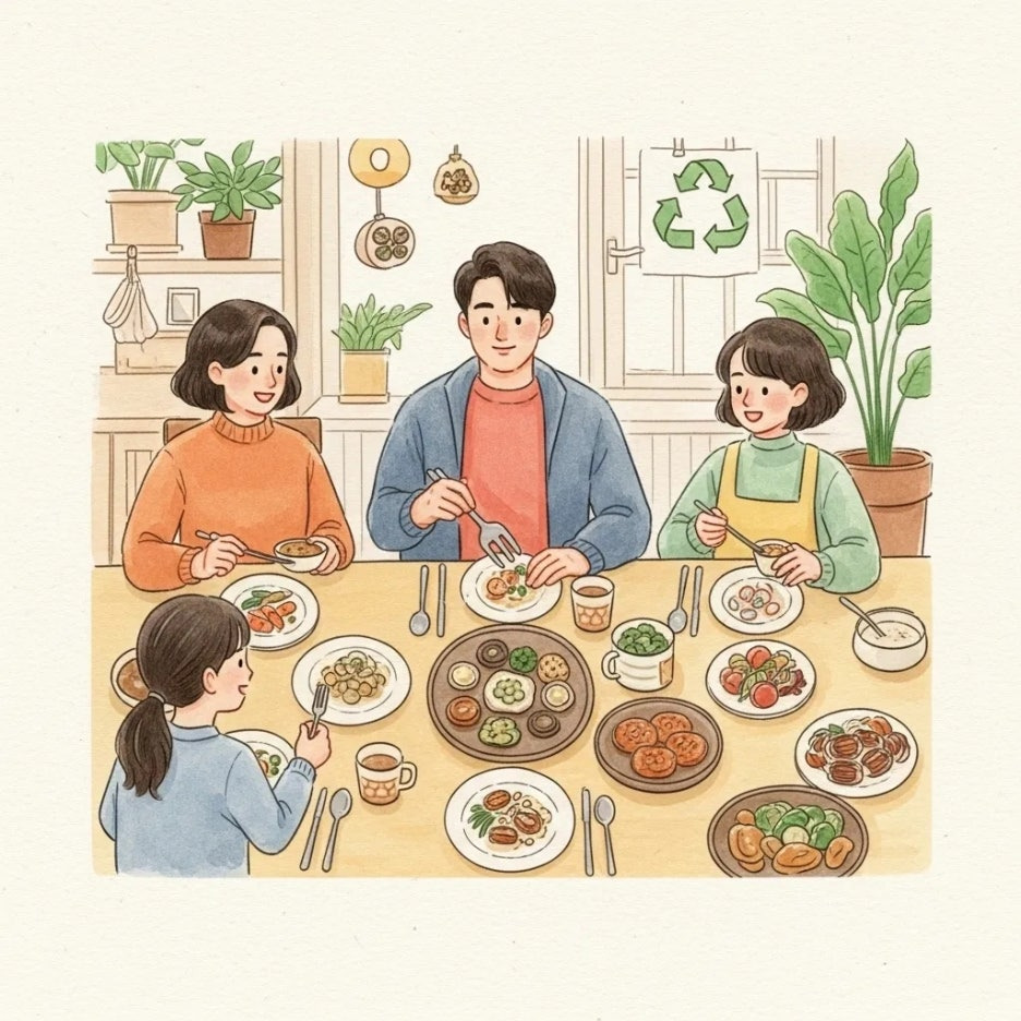제철 국산 농산물 소비, 불필요한 음식물 쓰레기 줄이기 등 작은 실천이 중요합니다.