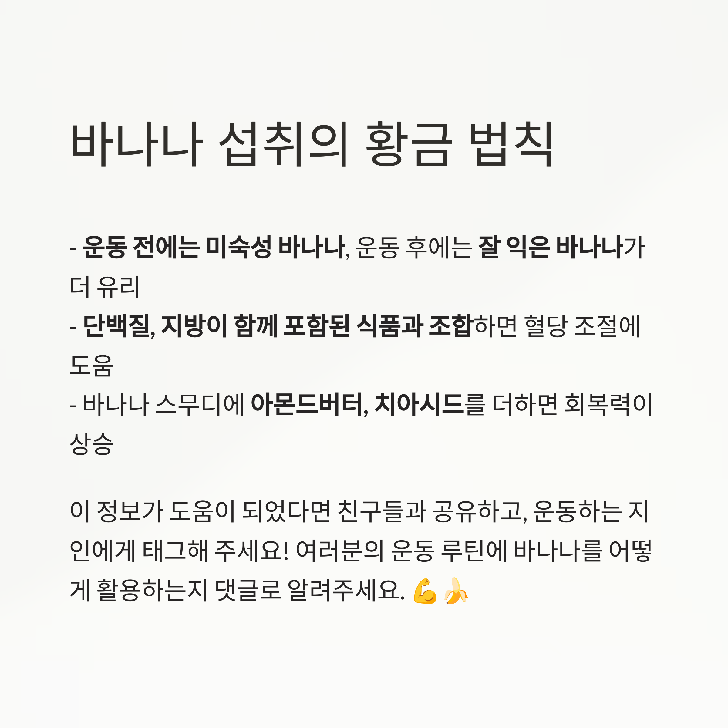 중요: 운동 후 30분 이내 바나나 섭취 시 회복 효율이 가장 높습니다.