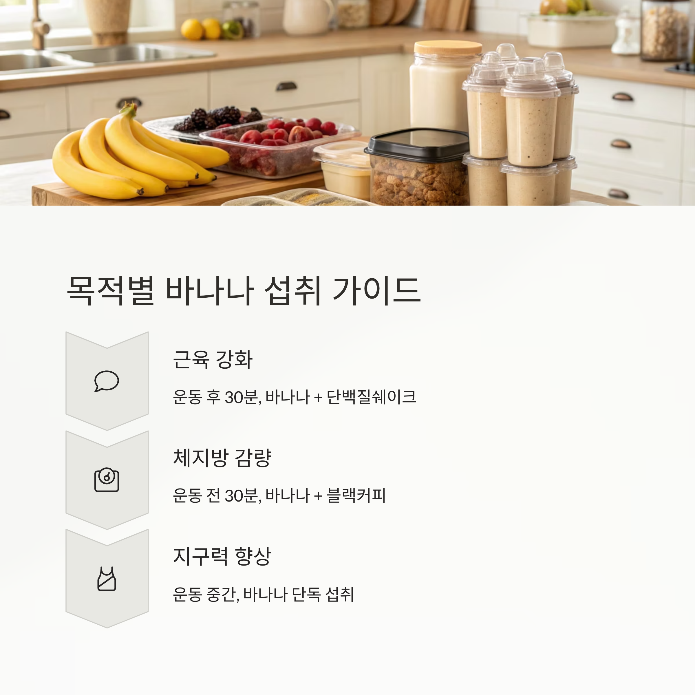 중요: 바나나는 운동 전후 어느 시점에도 활용 가능하며, 섭취 목적에 따라 조합을 달리하는 것이 핵심입니다.