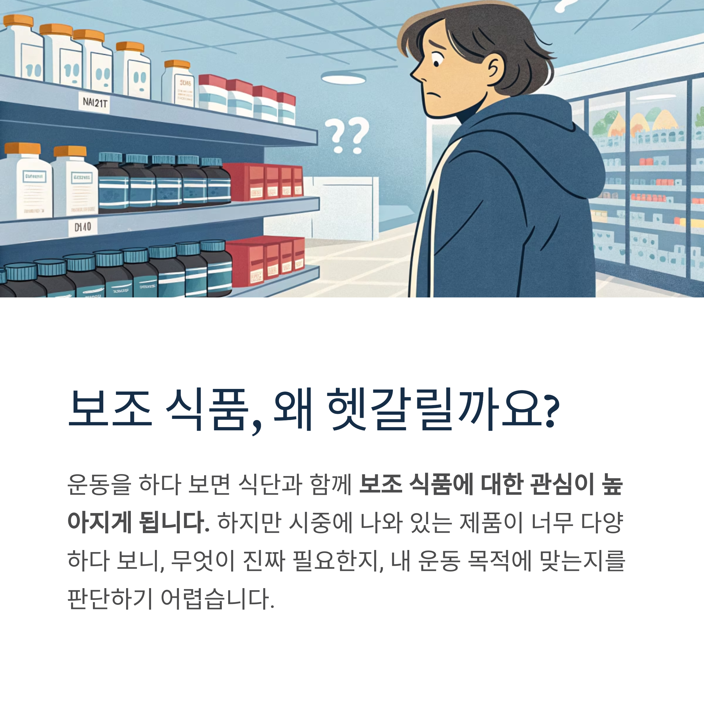 무엇이 진짜 필요한지, 내 운동 목적에 맞는지를 판단하기 어렵습니다.
