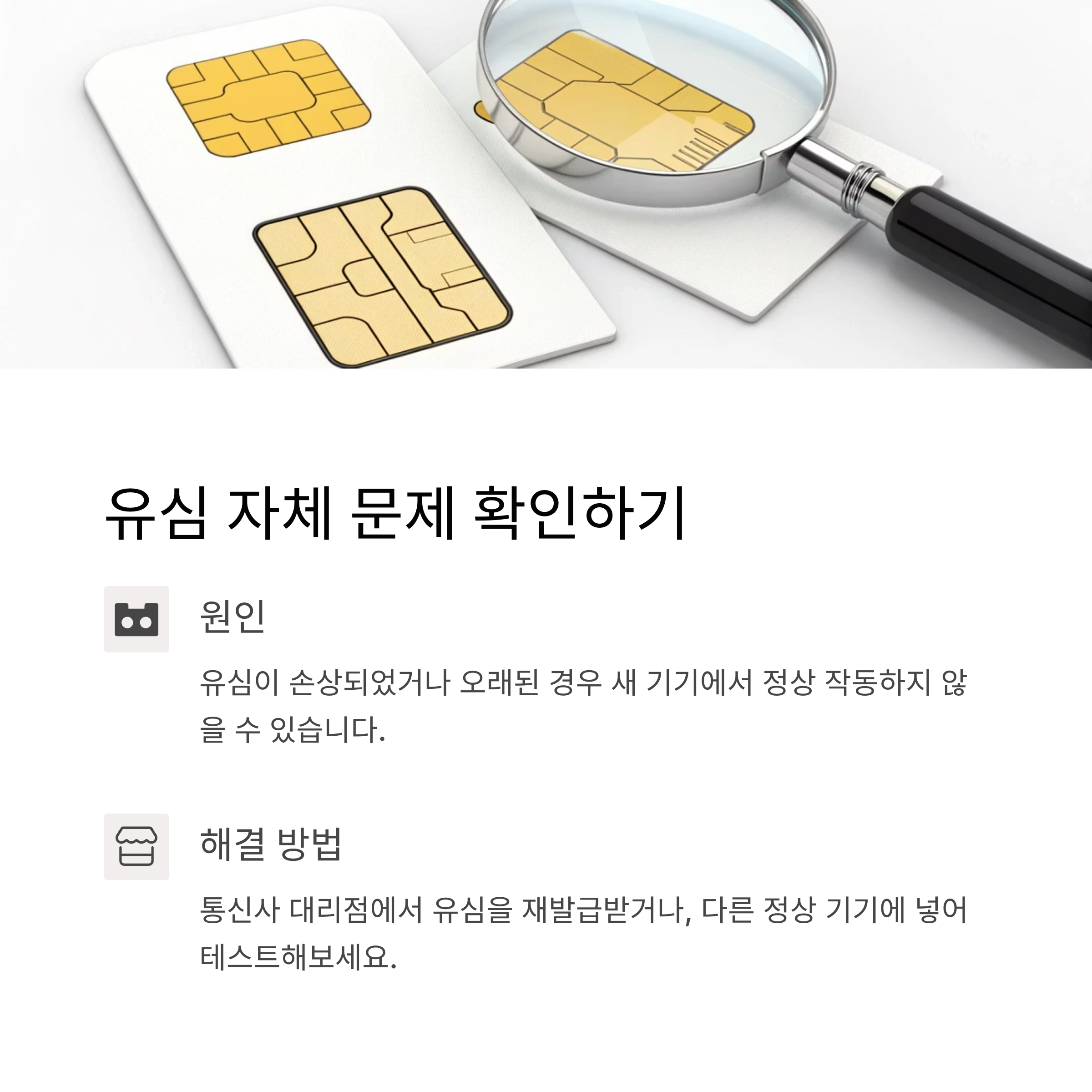 - 가까운 통신사 대리점에서 유심을 재발급받아보세요 (유료 또는 무료).