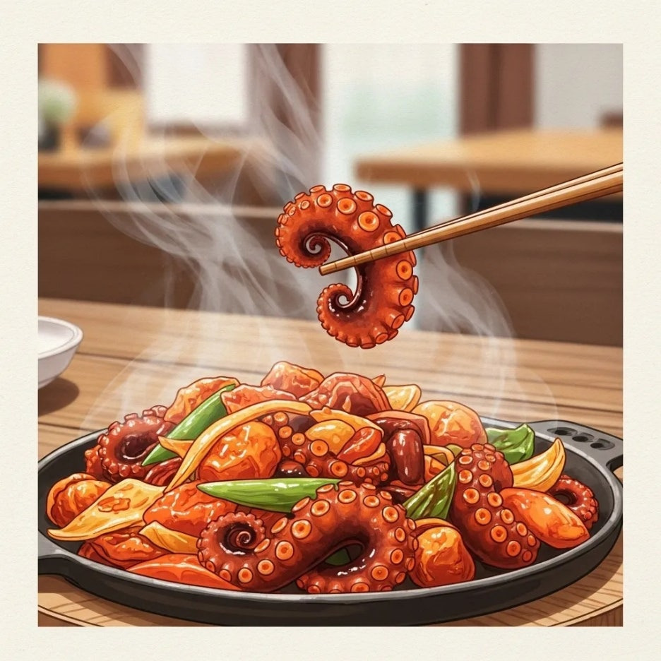 쫄깃한 낙지의 식감과 매콤한 양념의 조화는 지친 몸에 활력을 불어넣어 주고, 여행으로 쌓인 피로를 싹 풀어주는 듯한 기분을 선사해요.