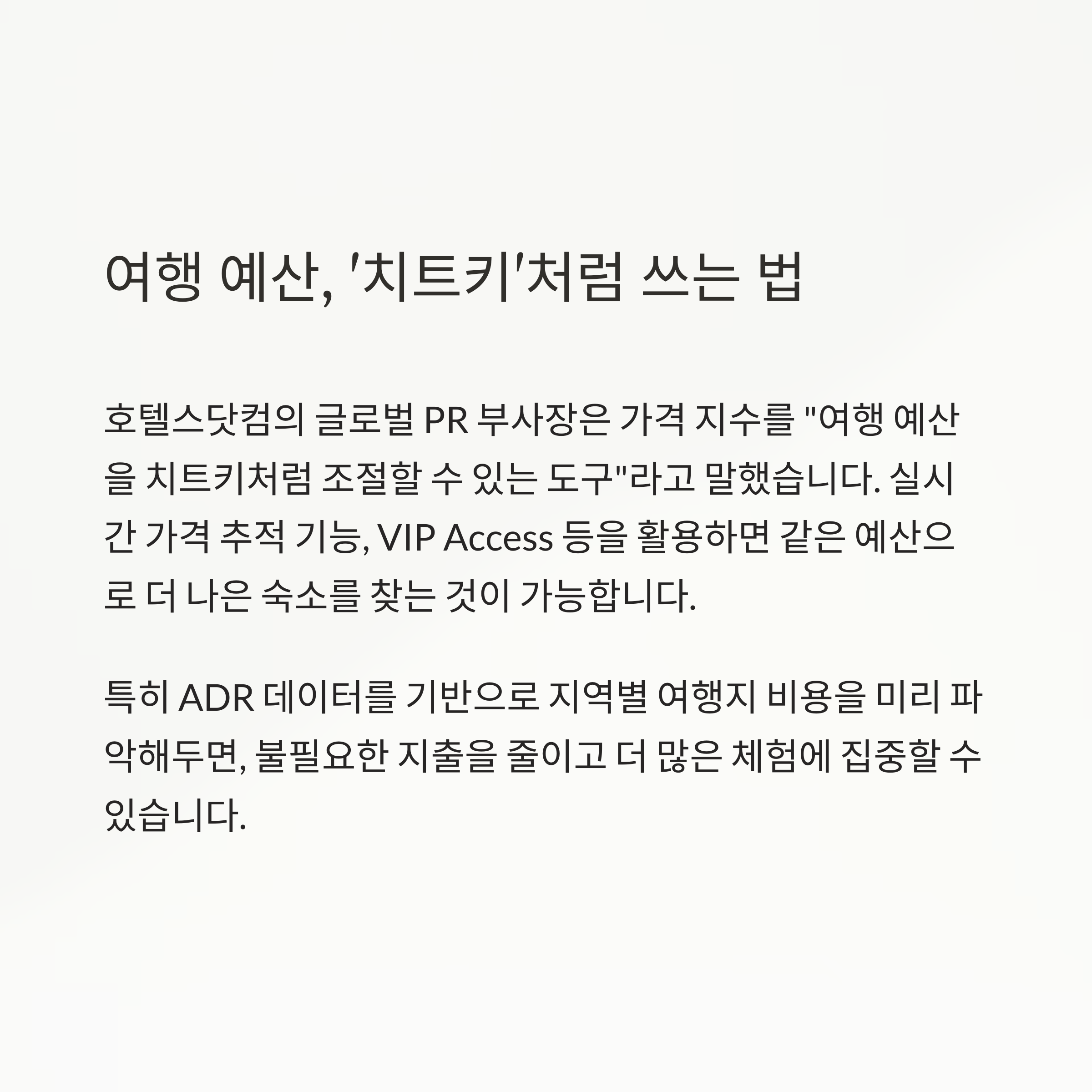 호텔스닷컴의 글로벌 PR 부사장은 가격 지수를
