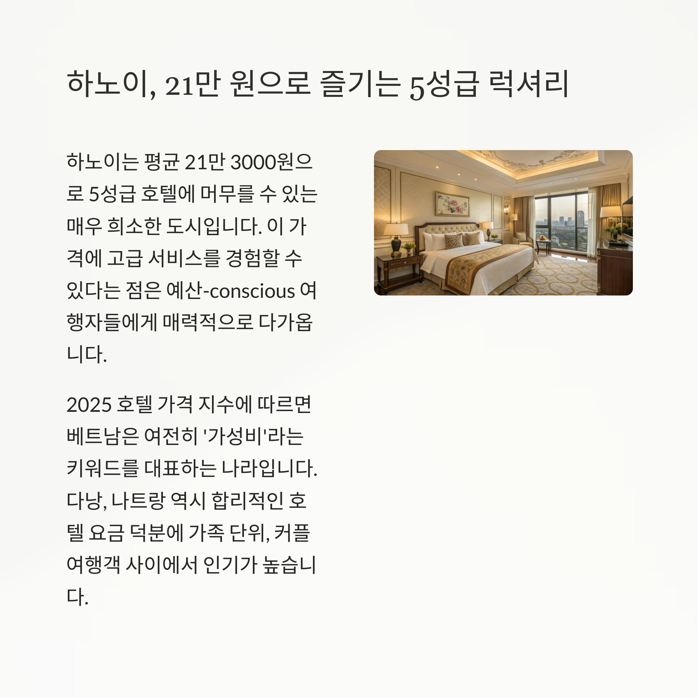 하노이는 평균 21만 3000원으로 5성급 호텔에 머무를 수 있는