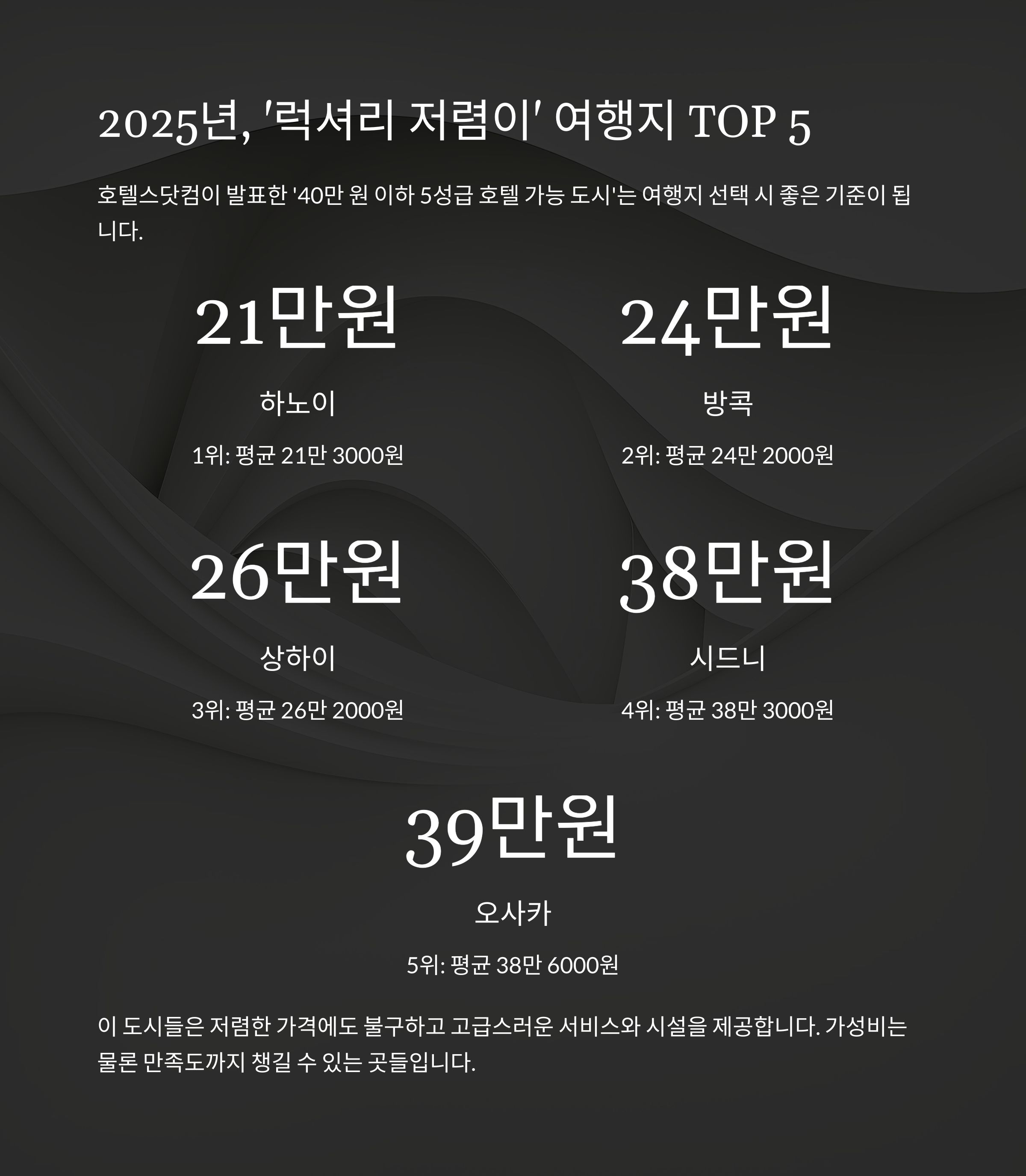 2025년, ‘럭셔리 저렴이’ 여행지 TOP 5