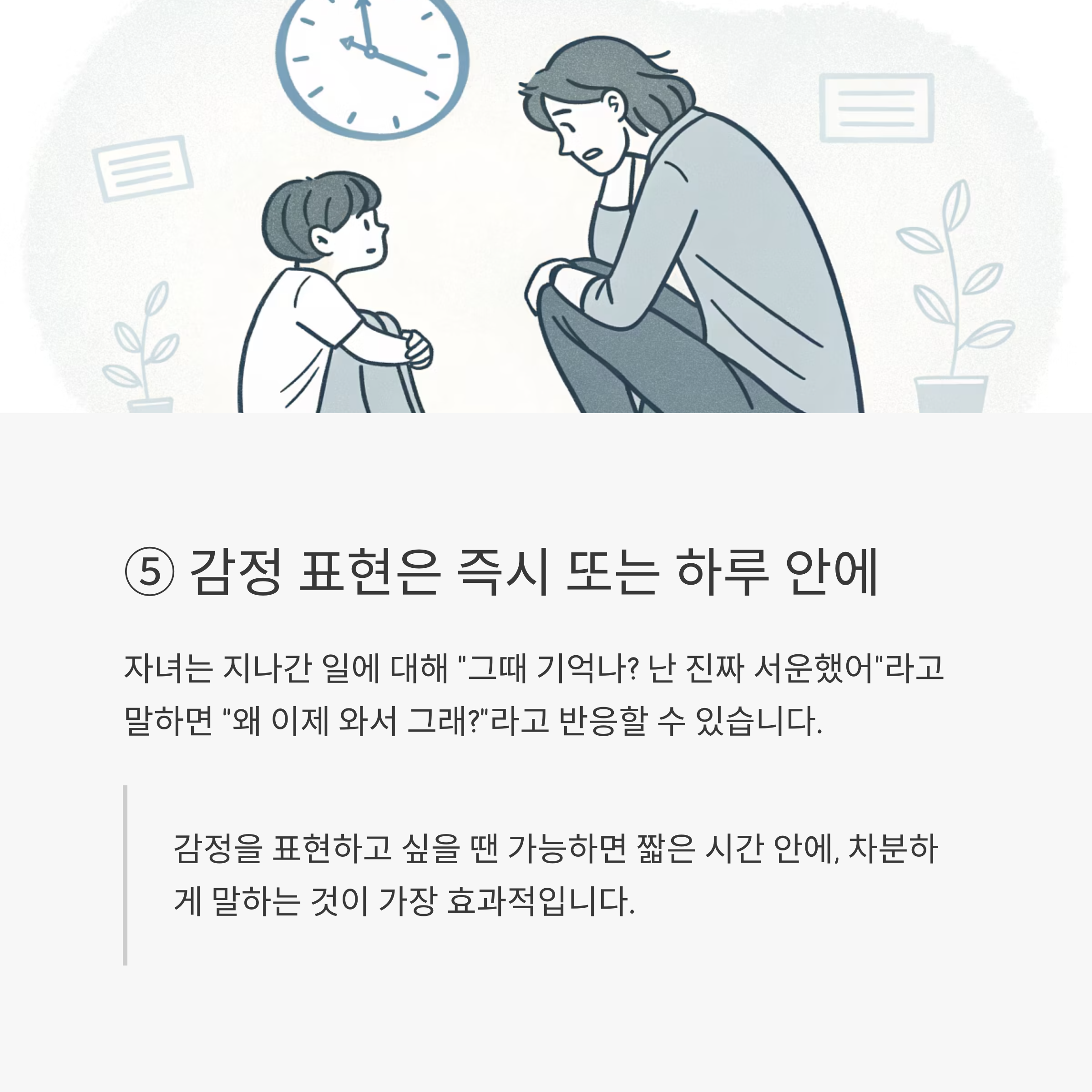 ⑤ 감정 표현은 즉시 또는 하루 안에