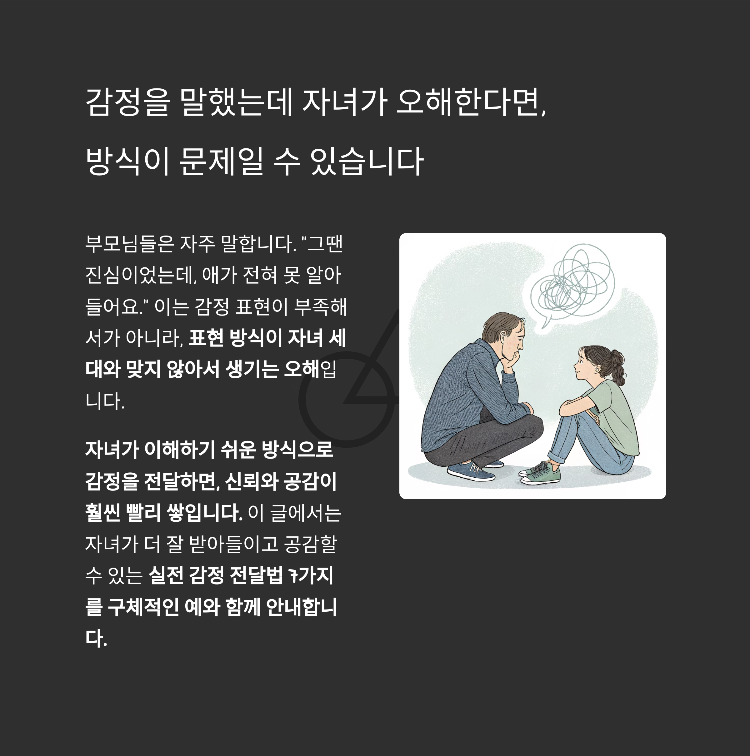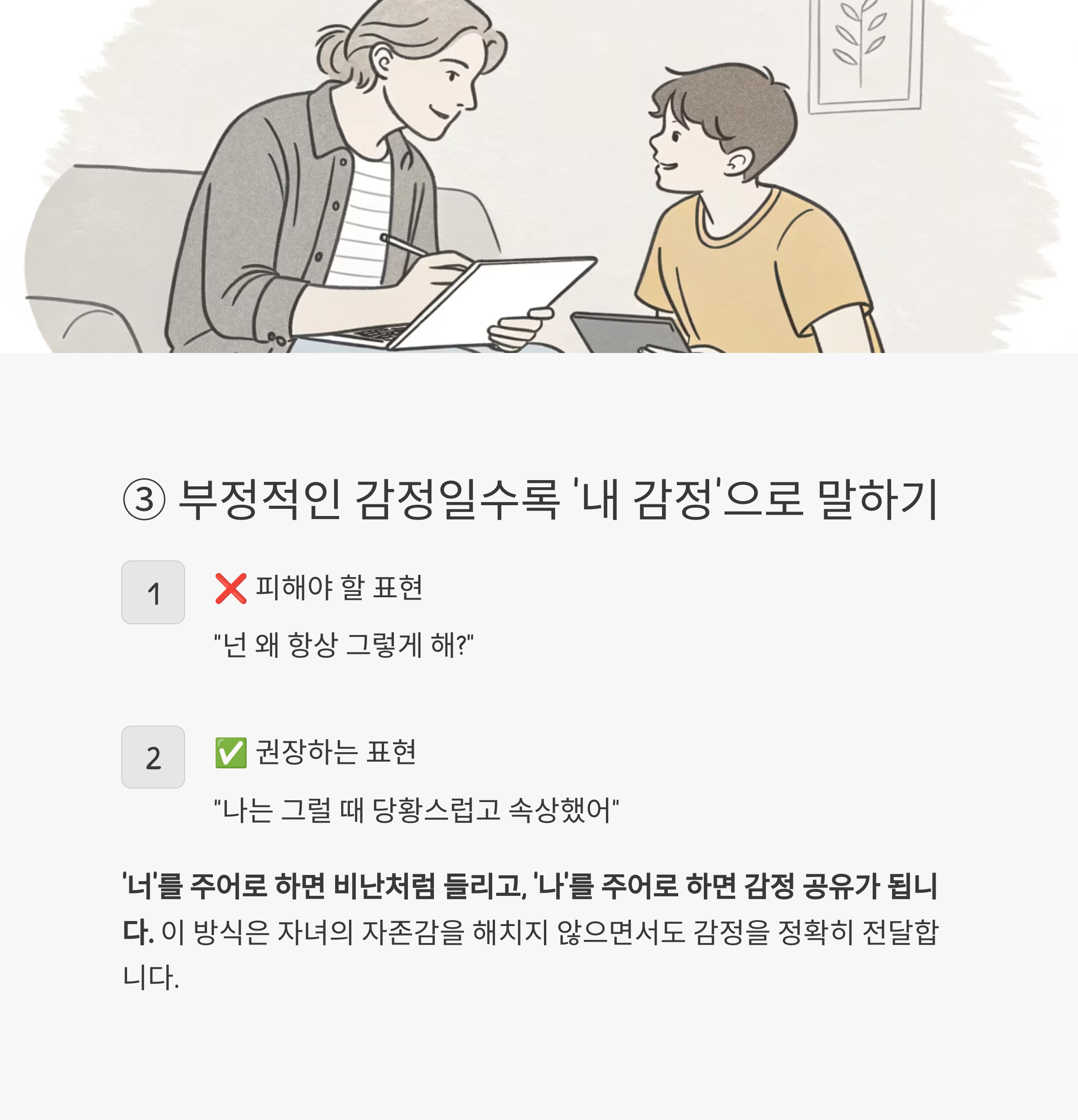 감정을 말했는데 자녀가 오해한다면, 방식이 문제일 수 있습니다