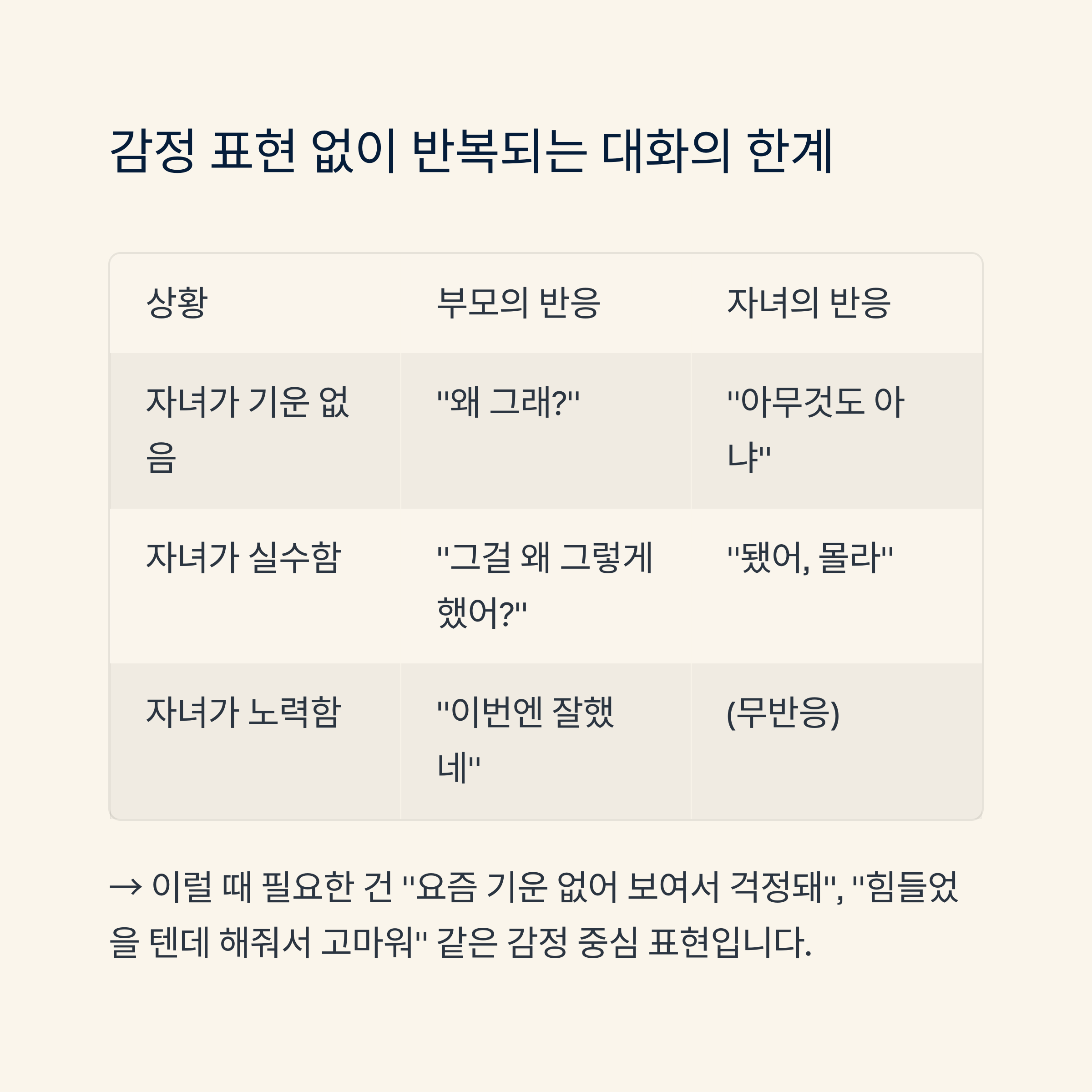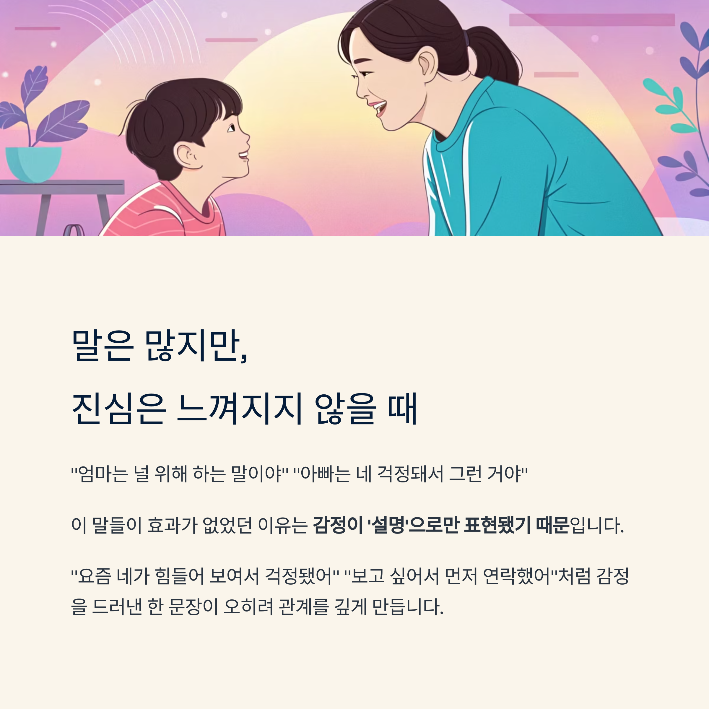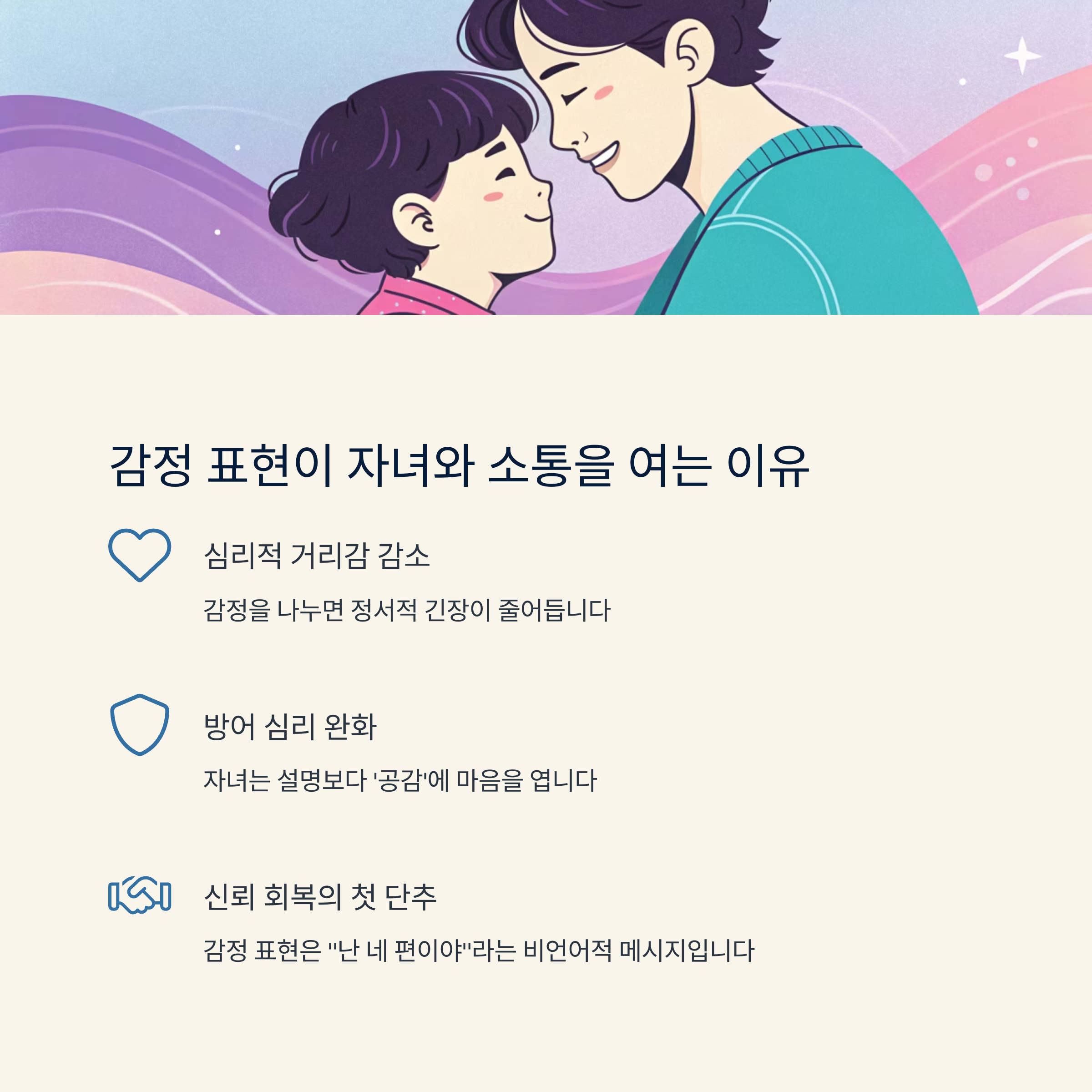 → 자녀는 설명보다 ‘공감’에 마음을 엽니다 - 신뢰 회복의 첫 단추