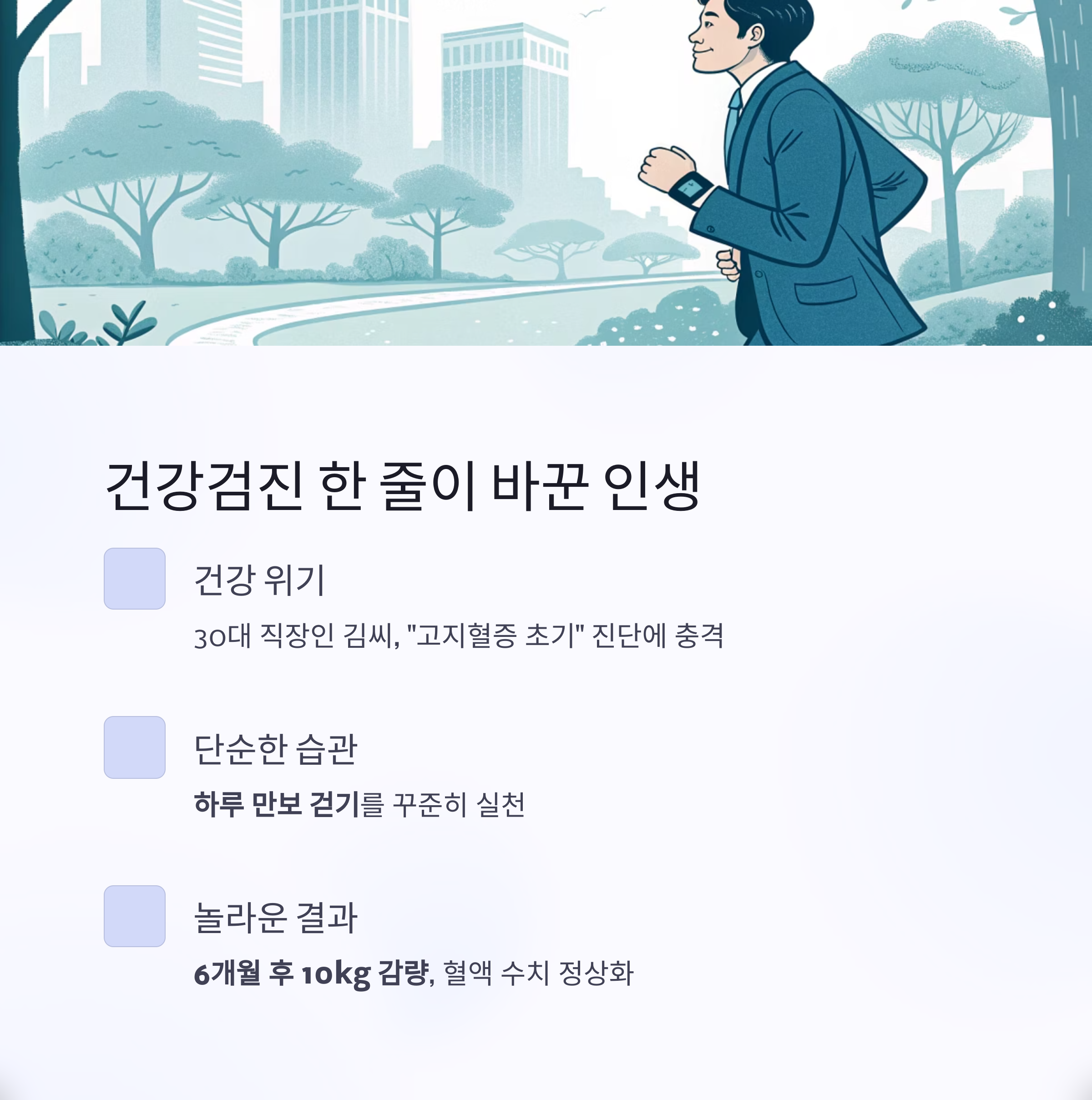 10kg 감량, 건강검진 결과 한 줄로 시작된 변화 – 김OO (30대 직장인)
