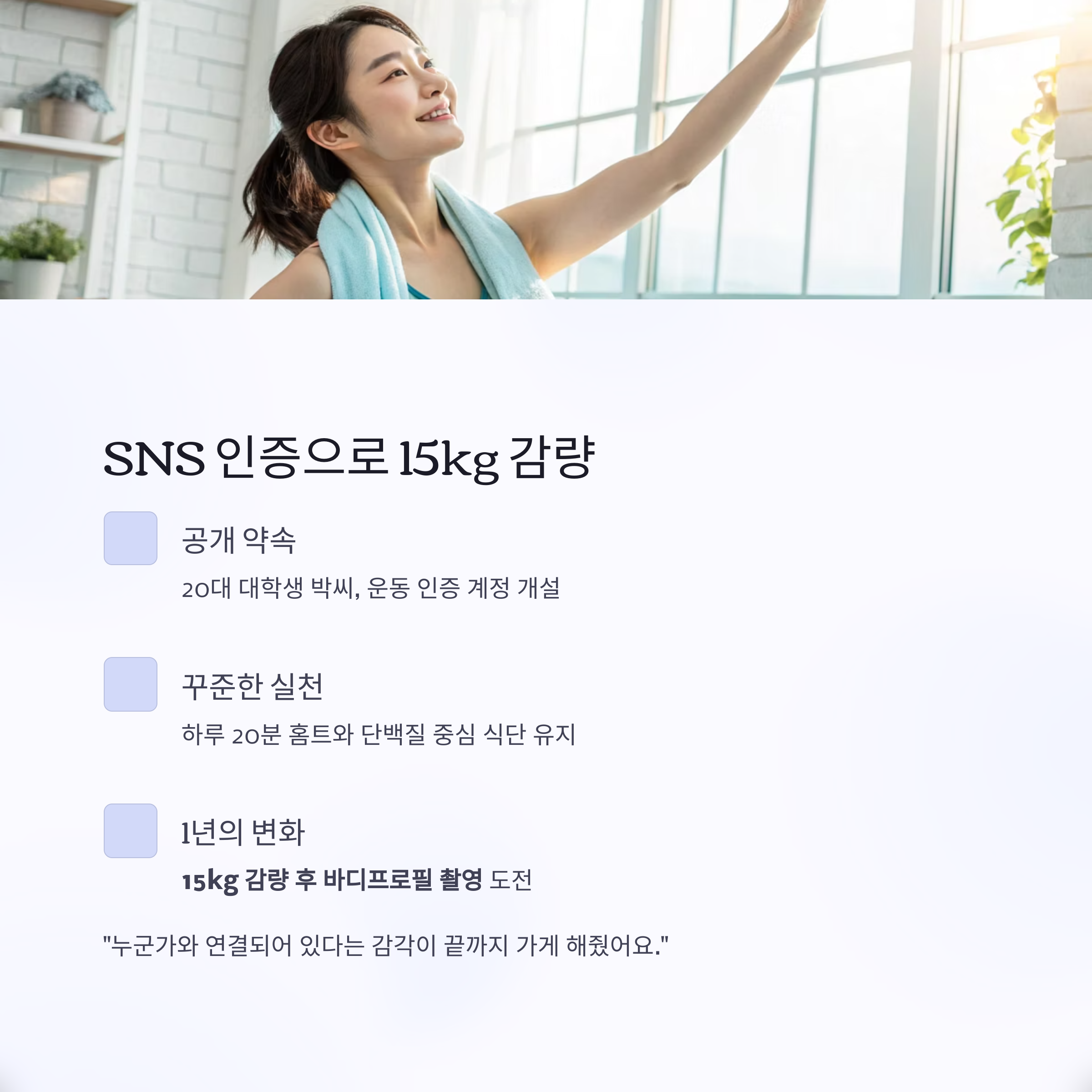 15kg 감량, SNS 운동 인증으로 포기하지 않았다 – 박OO (20대 대학생)