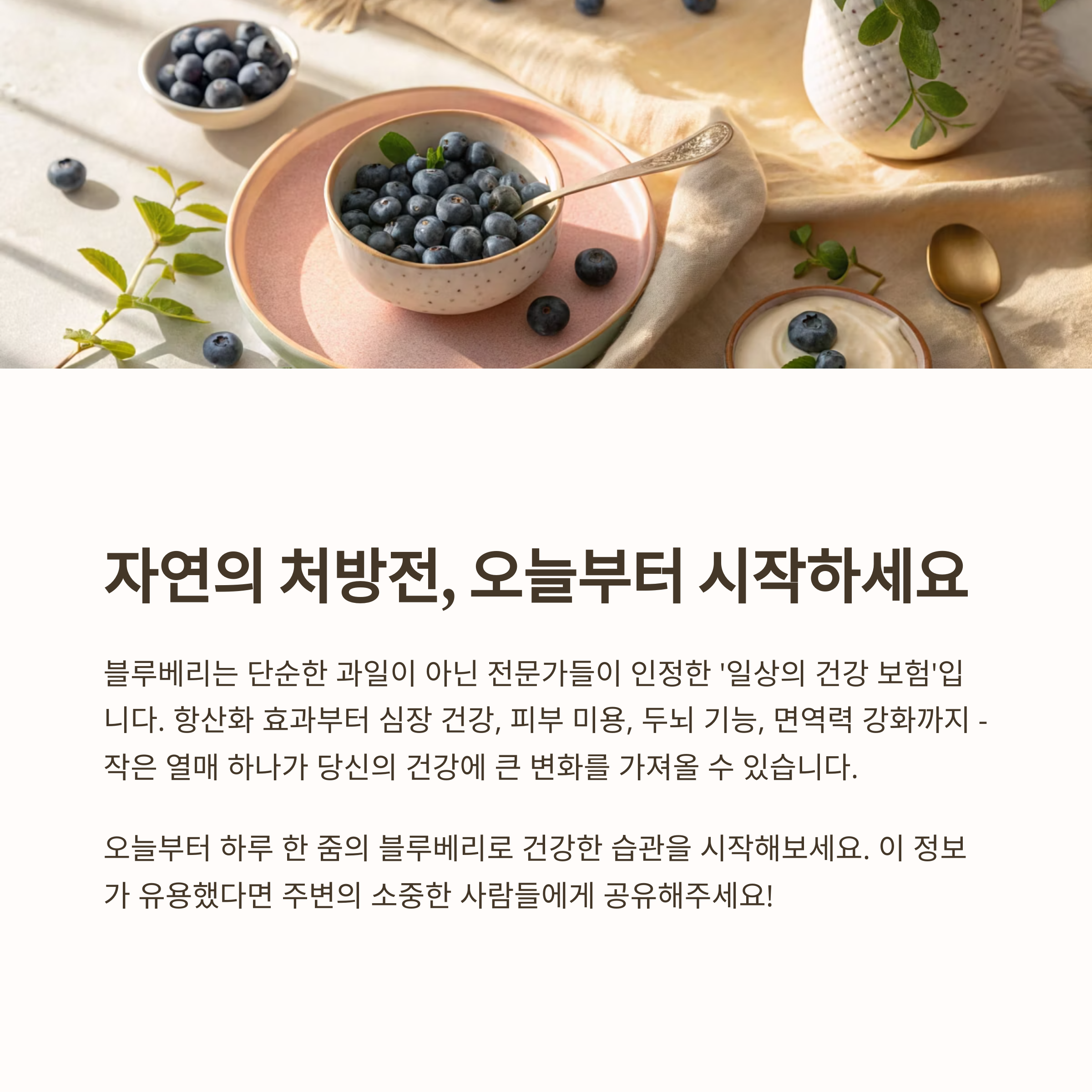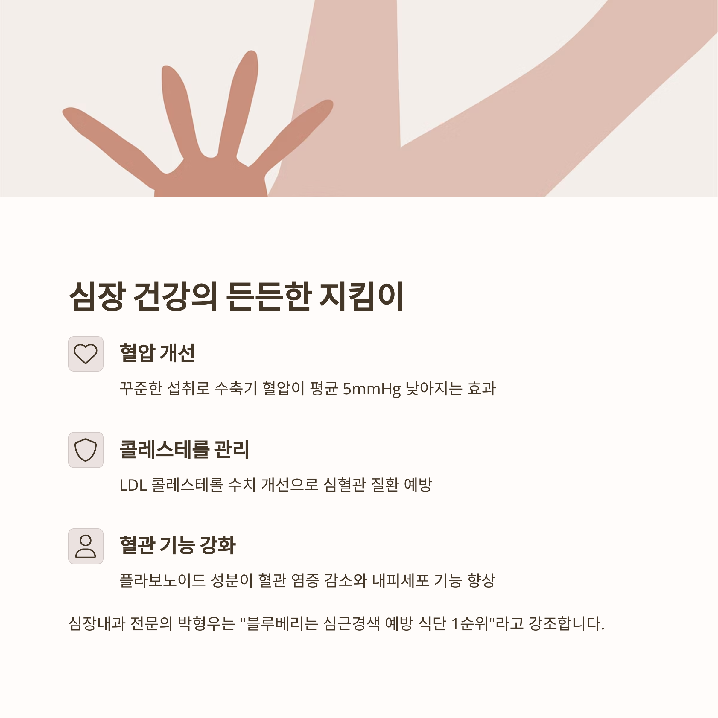 항산화·혈관 건강·두뇌 기능·피부 노화 방지 등 다방면에서 블루베리를 강력히 추천합니다.