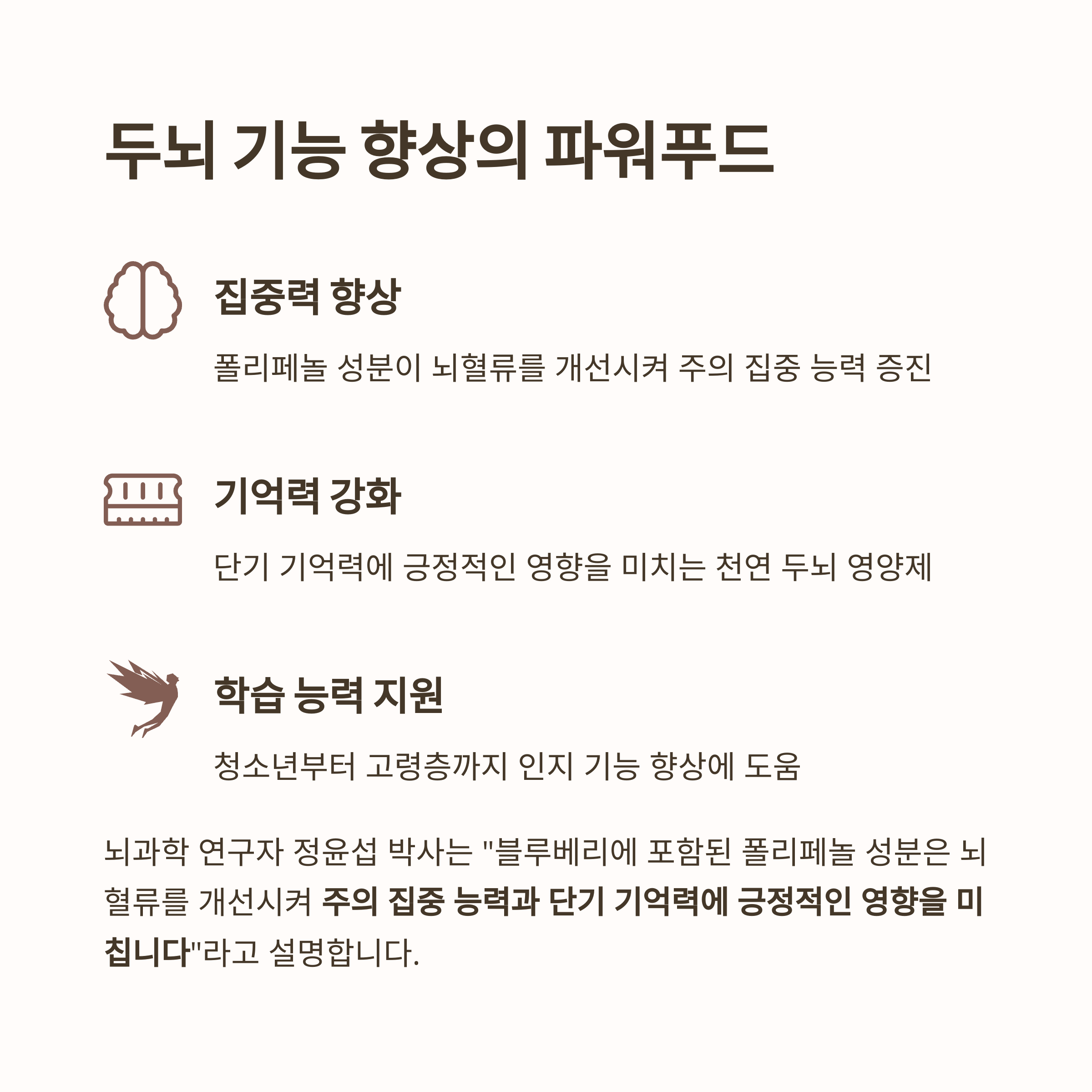 | 뇌 기능 | 폴리페놀 | "집중력, 기억력에 긍정적" |