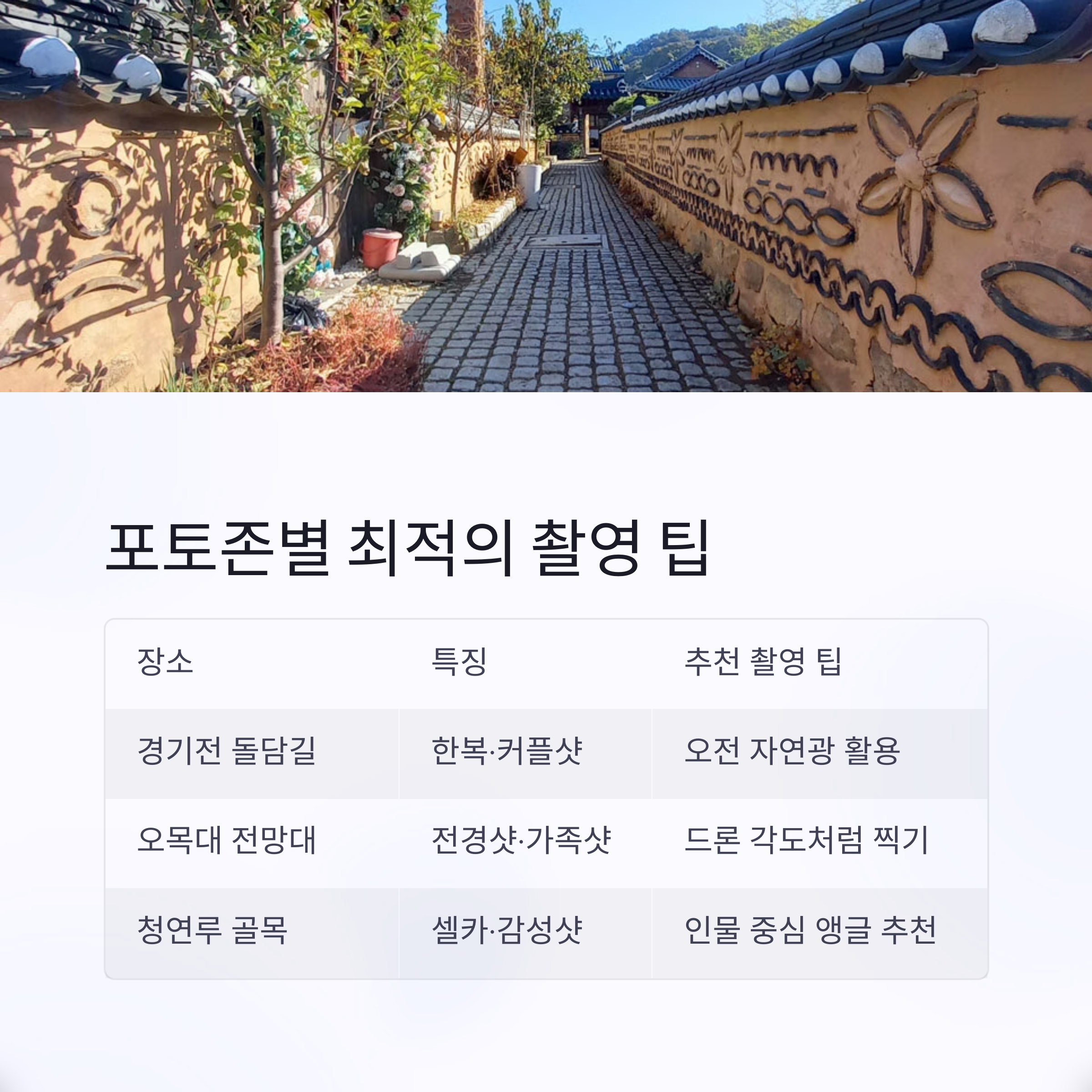 | 경기전 돌담길 | 한복·커플샷 | 오전 자연광 활용 |