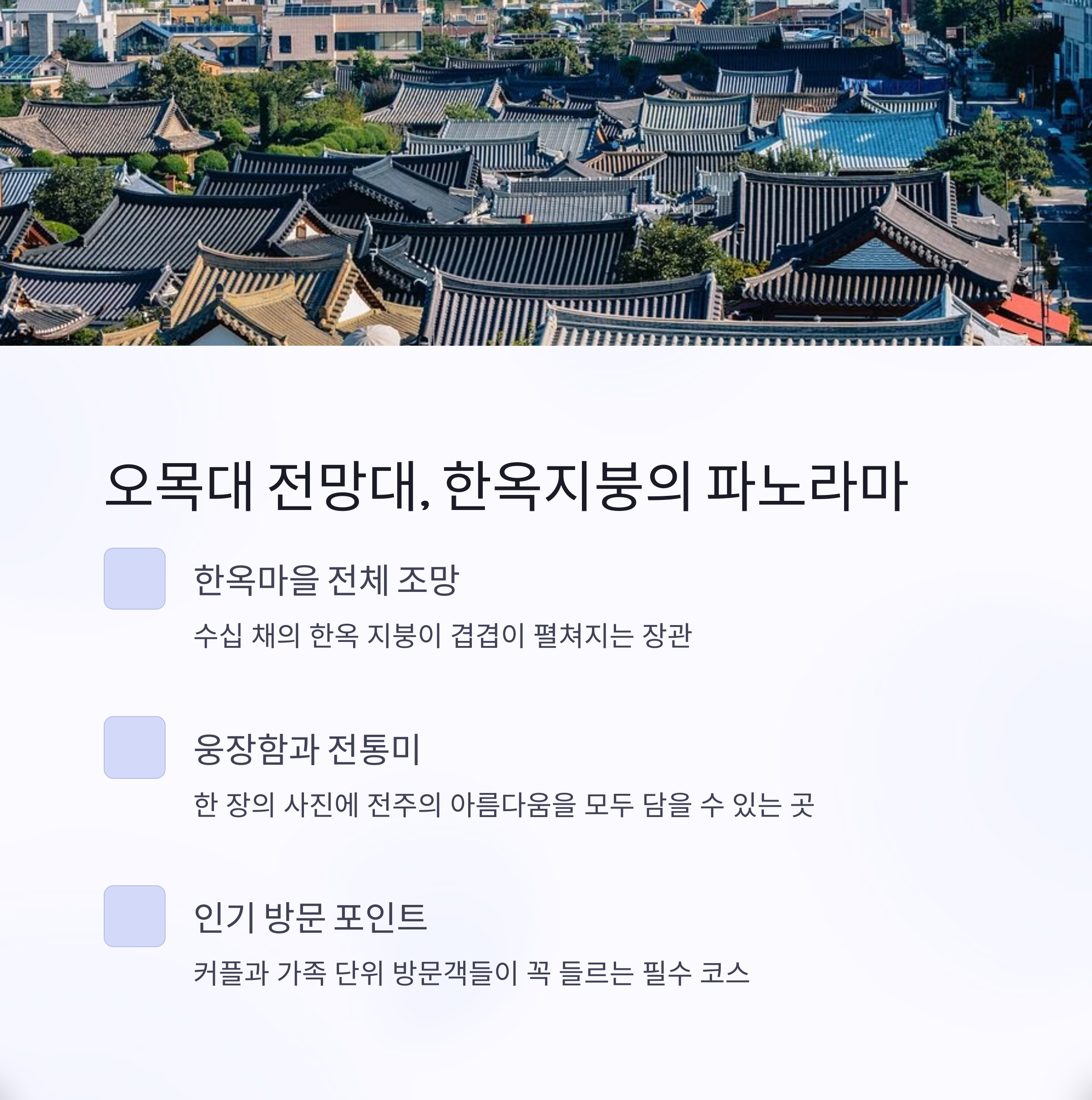 오목대 전망대 – 전통 지붕들 위로 펼쳐지는 전주