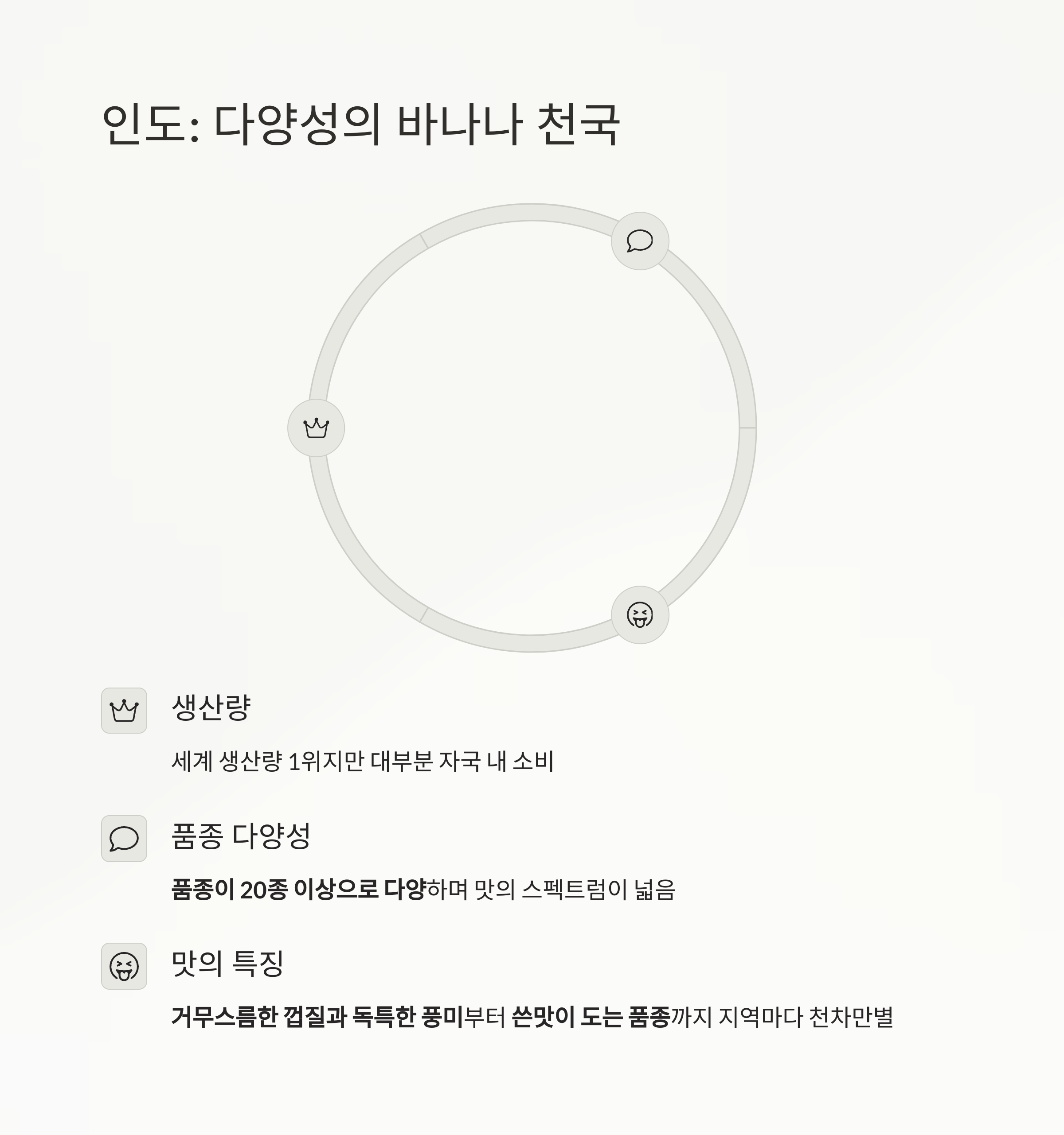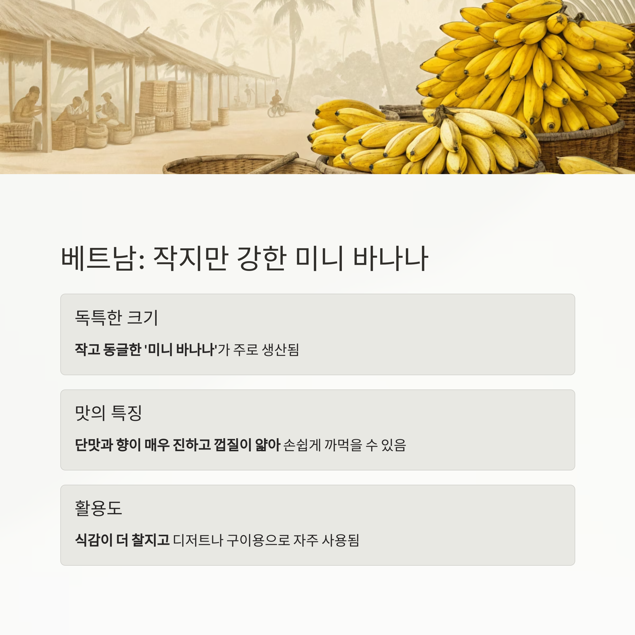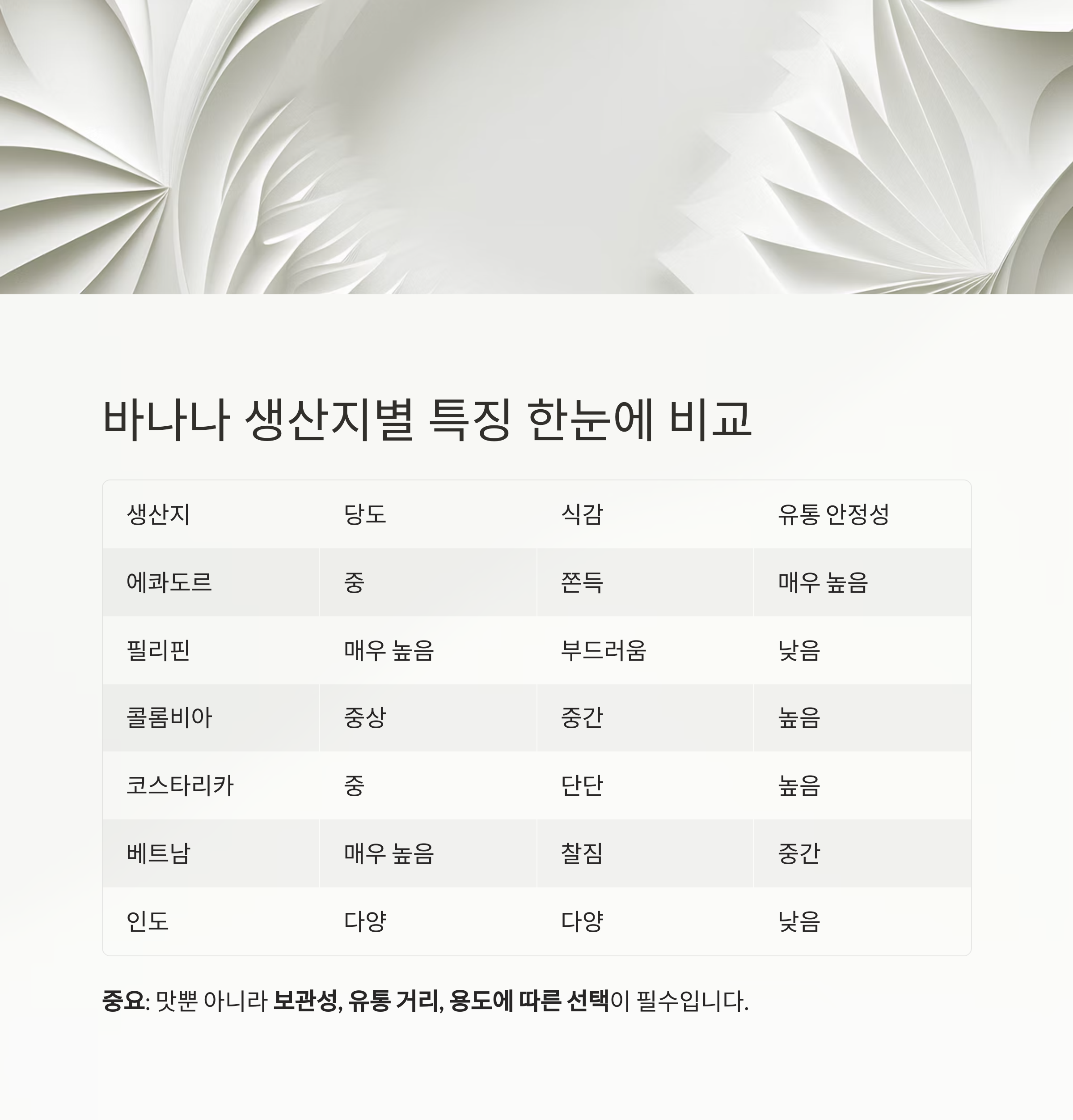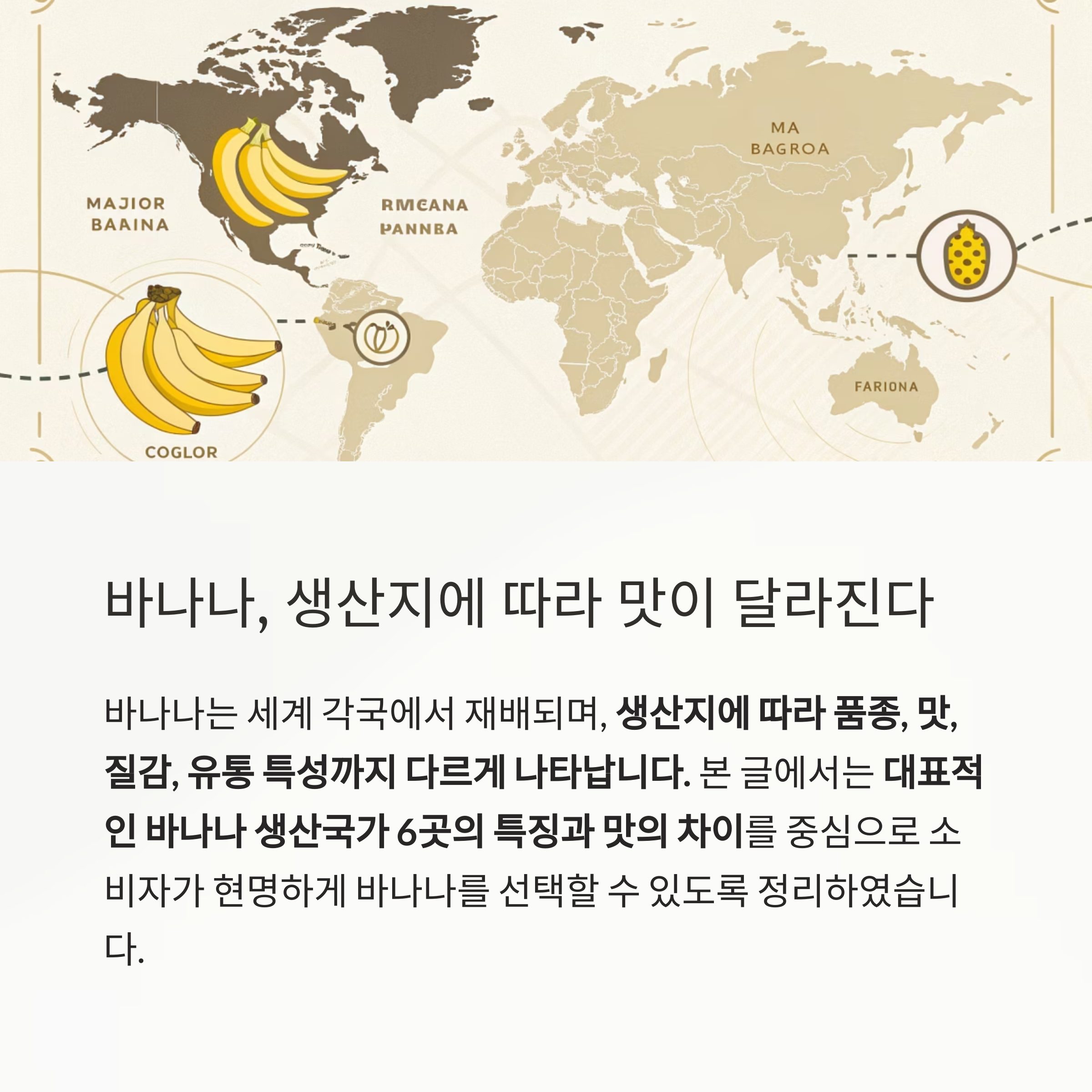 바나나는 세계 각국에서 재배되며, 생산지에 따라 품종, 맛, 질감, 유통 특성까지 다르게 나타납니다.