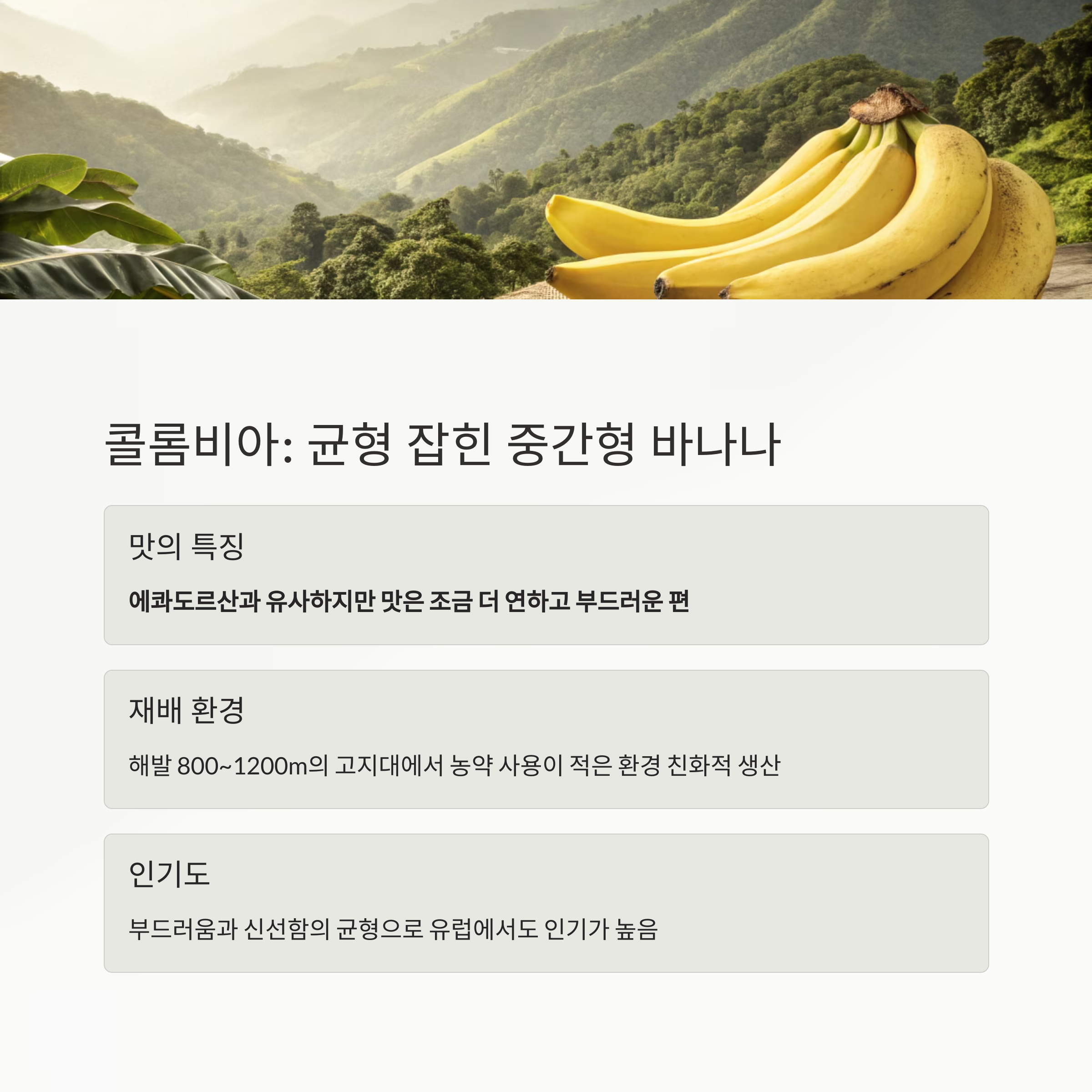 핵심: "부드러움과 신선함의 균형이 잘 잡힌 중간형 바나나"