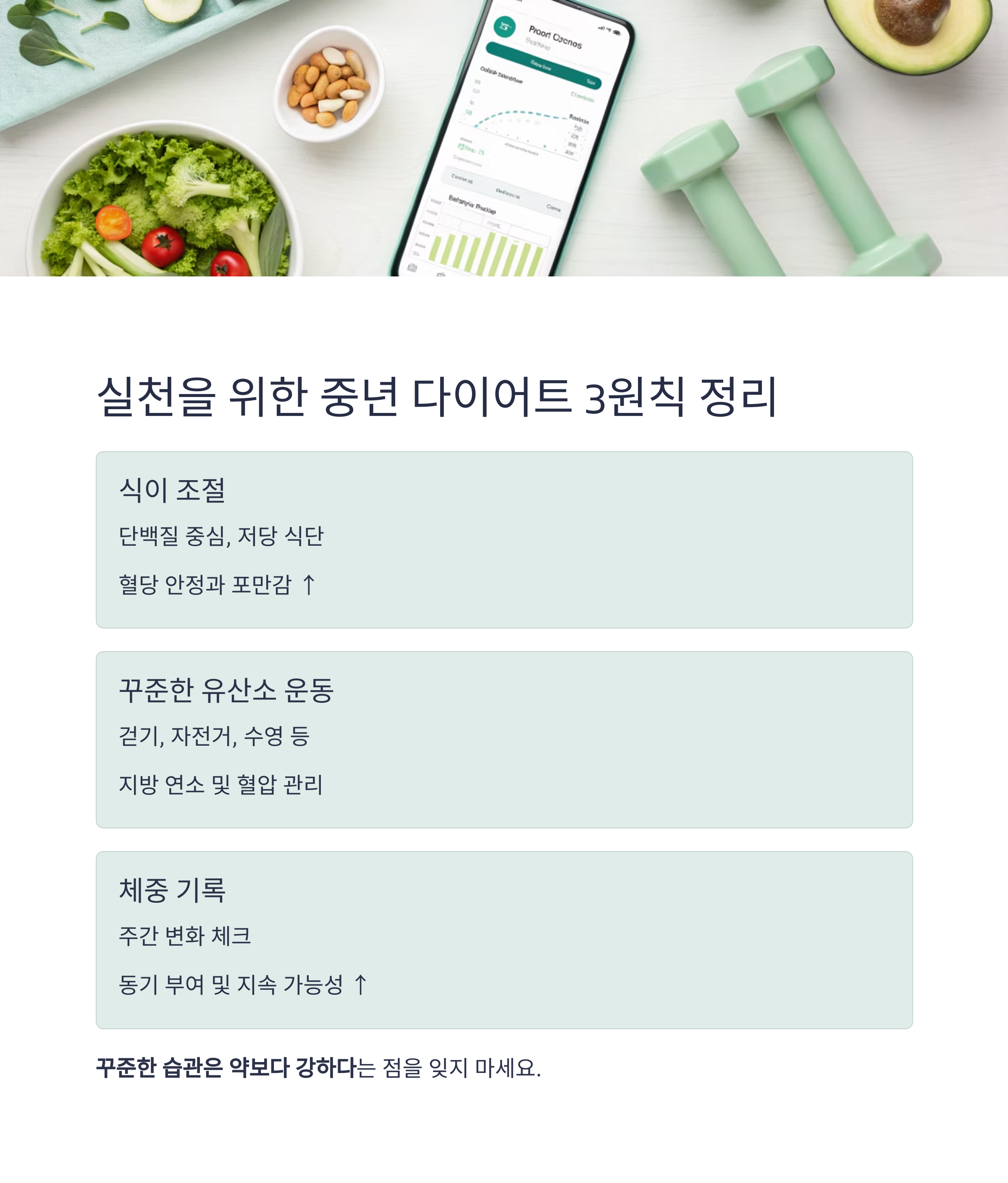 중년의 체중 관리는 단순한 미용이 아닌 생존과 직결된 건강 전략입니다