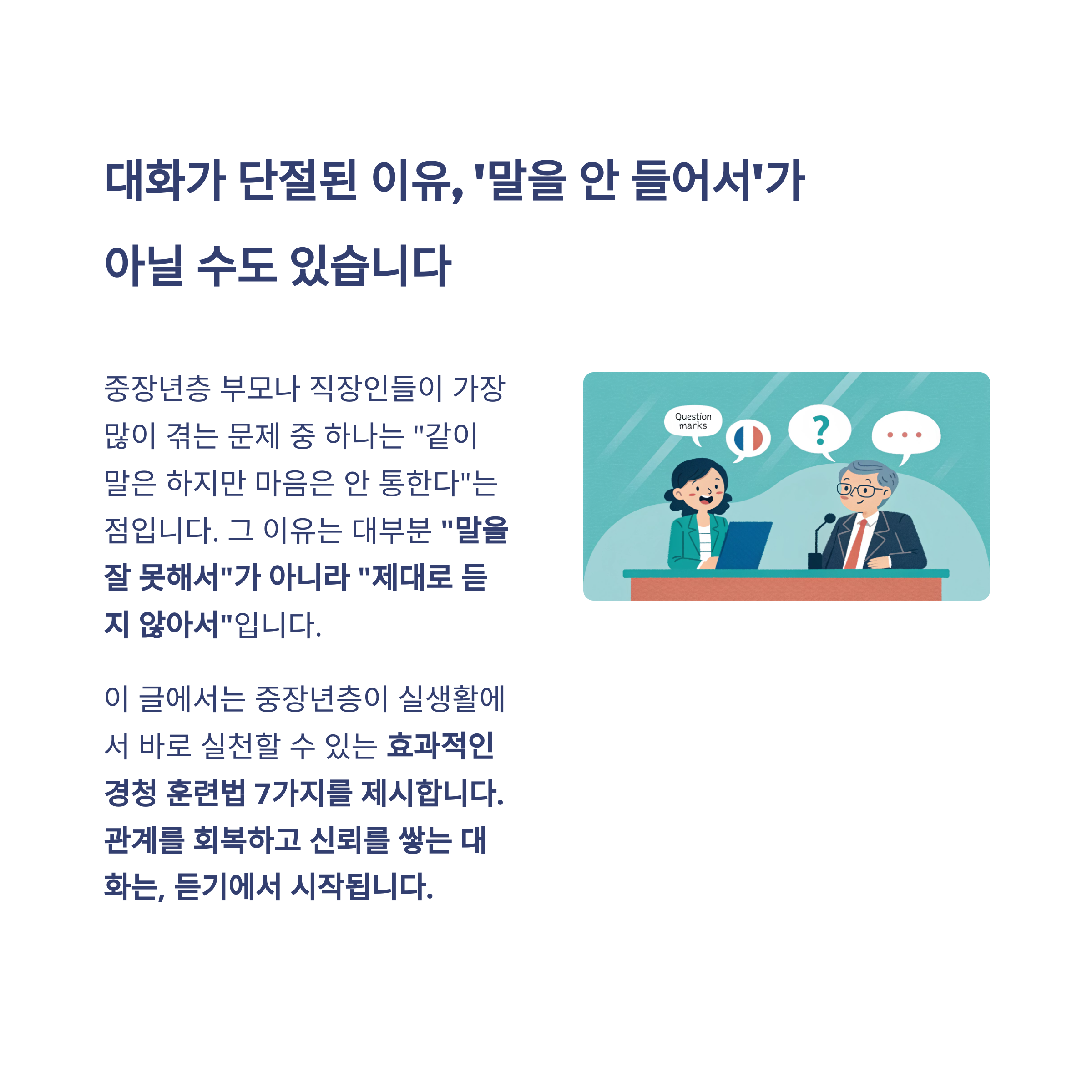 그 이유는 대부분 “말을 잘 못해서”가 아니라 “제대로 듣지 않아서”입니다.