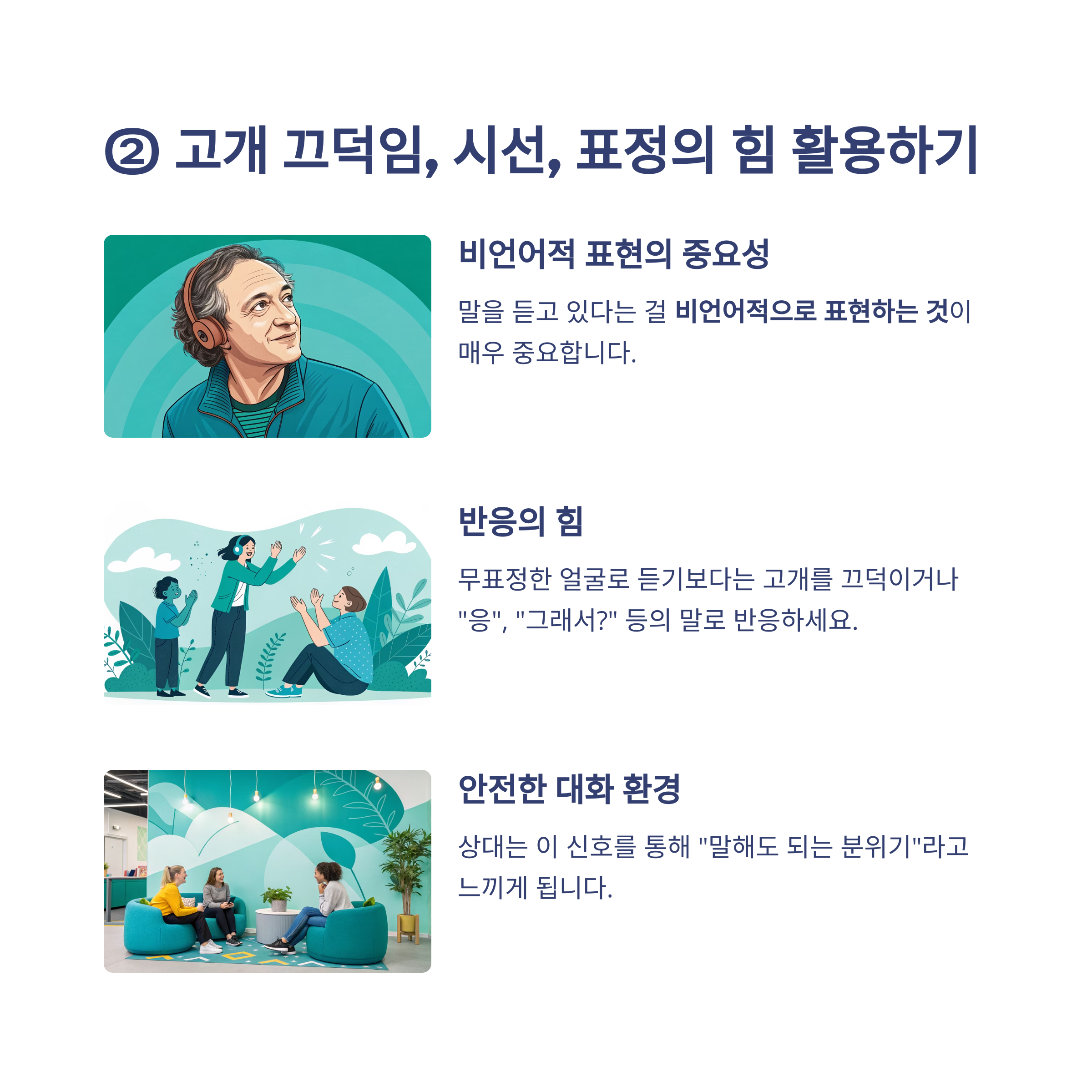 ② 고개 끄덕임, 시선, 표정의 힘 활용하기