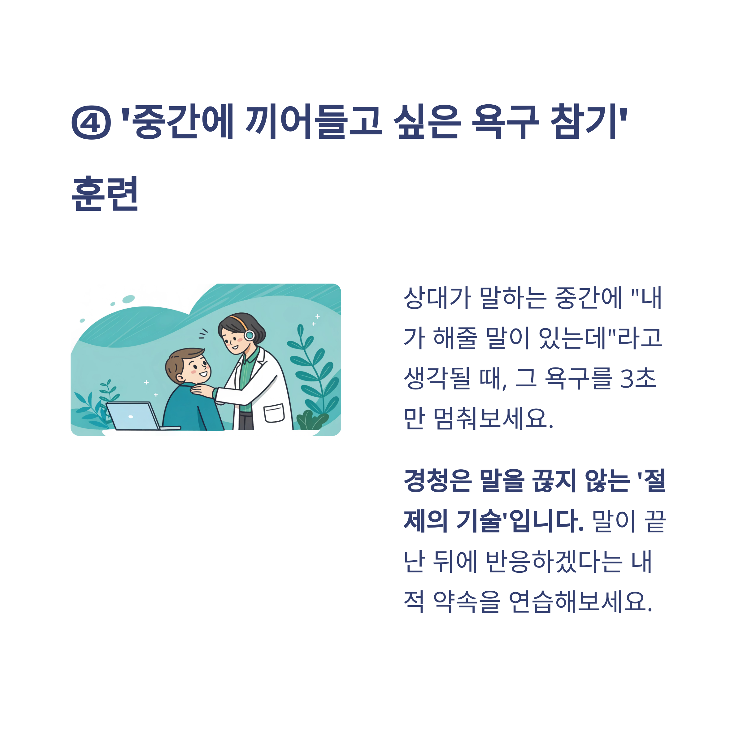 경청은 말을 끊지 않는 ‘절제의 기술’입니다.