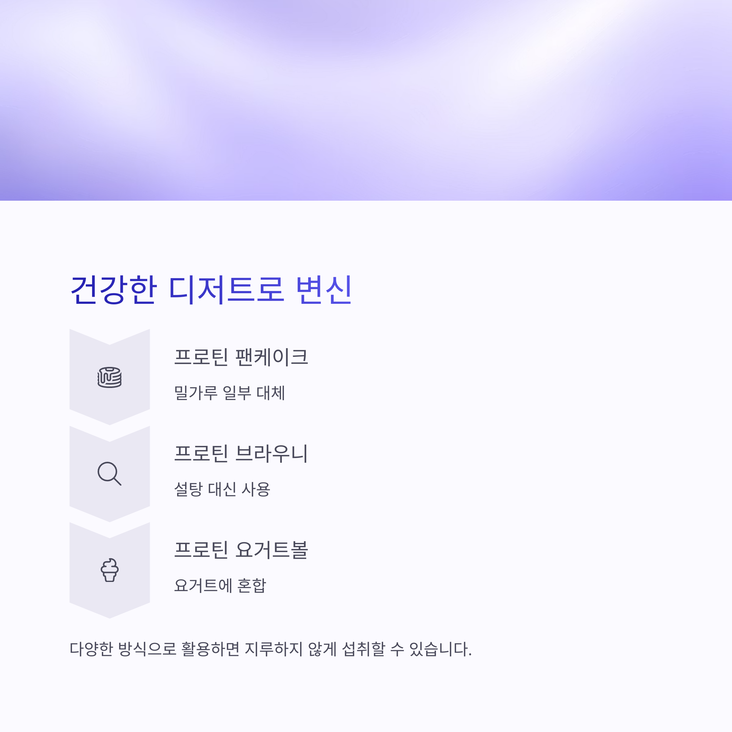 | 프로틴 팬케이크 | 밀가루 일부 대체 | 포만감과 단맛 모두 잡기 |