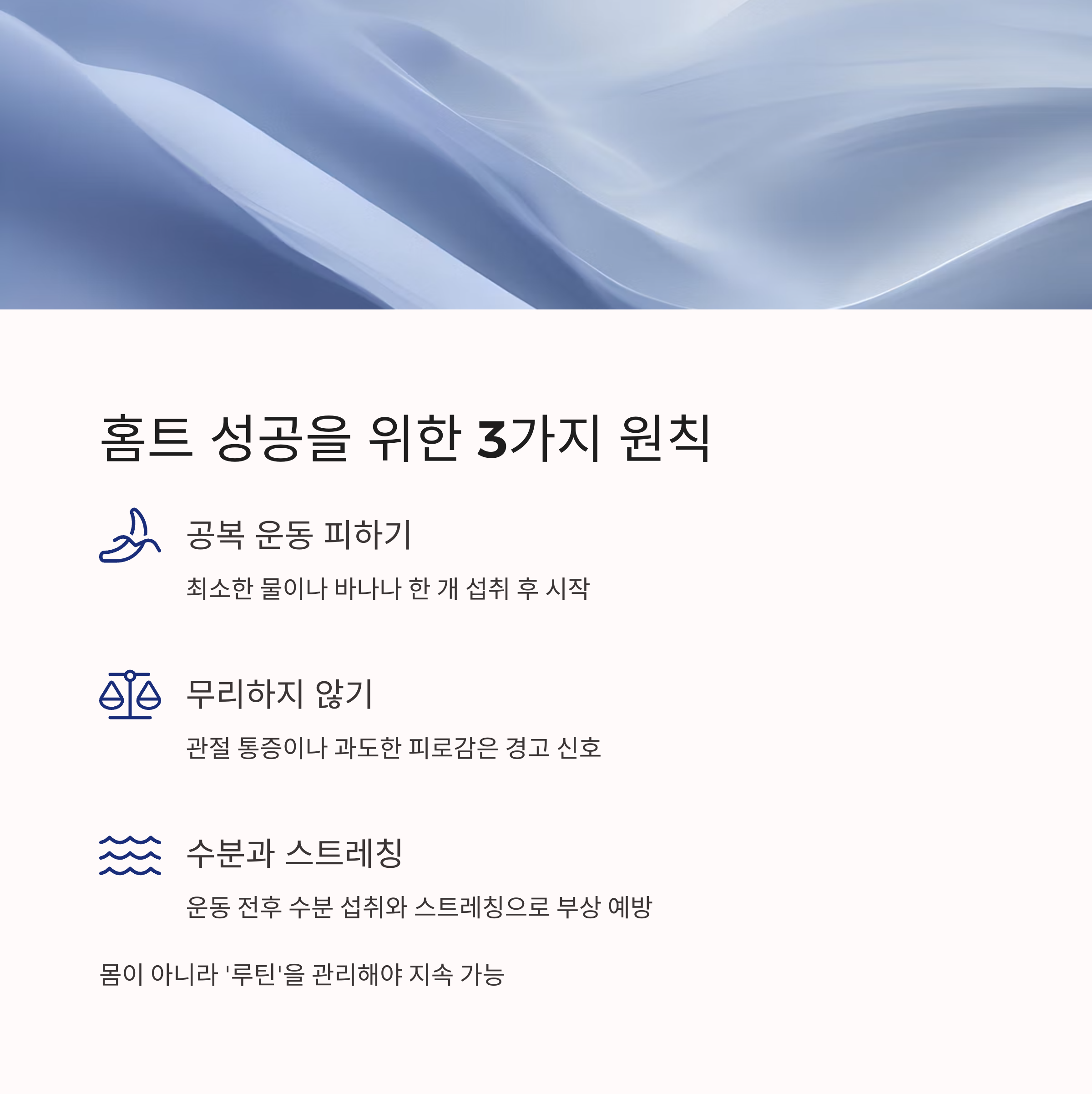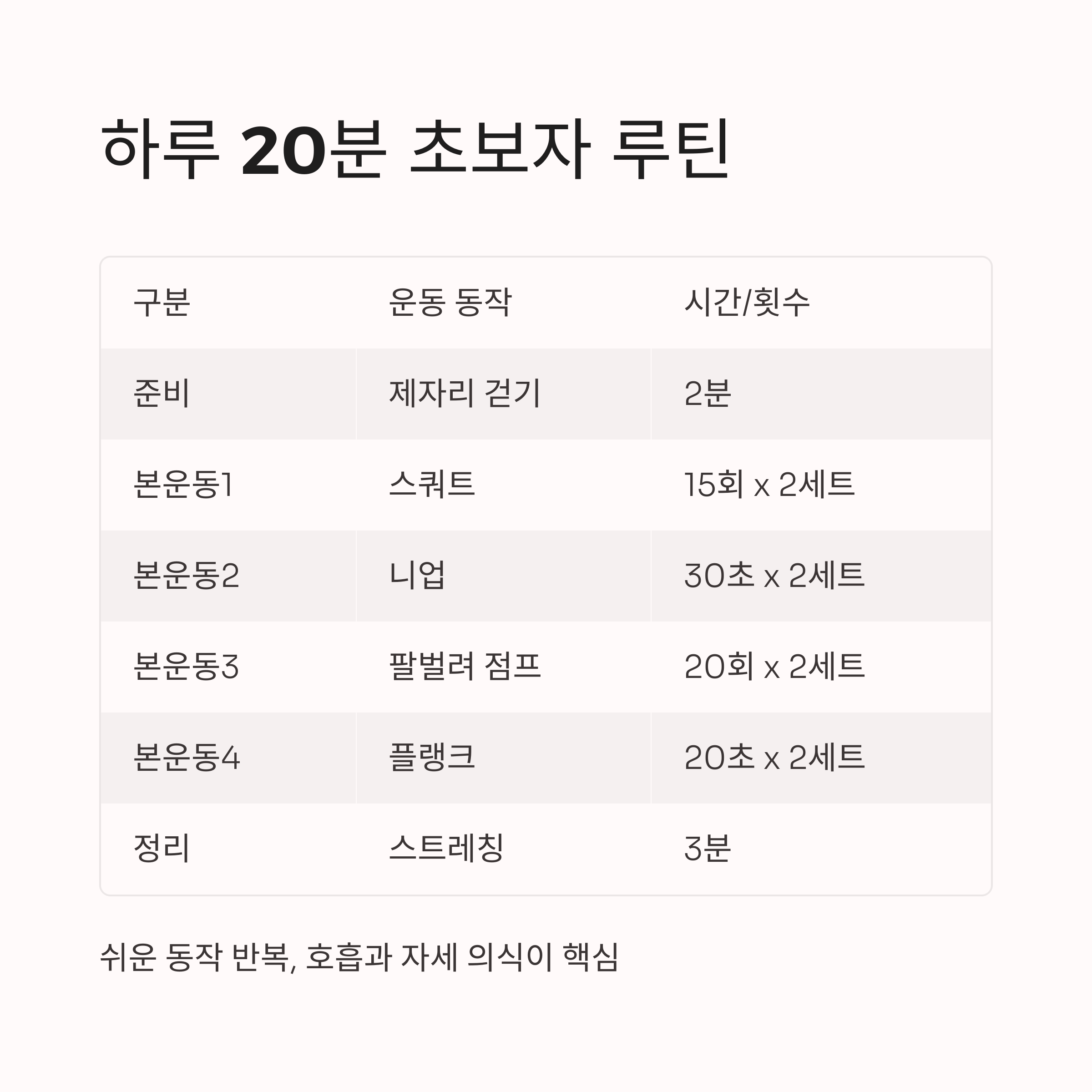 초보자는 운동 시간보다 ‘지속 가능성’이 중요합니다.