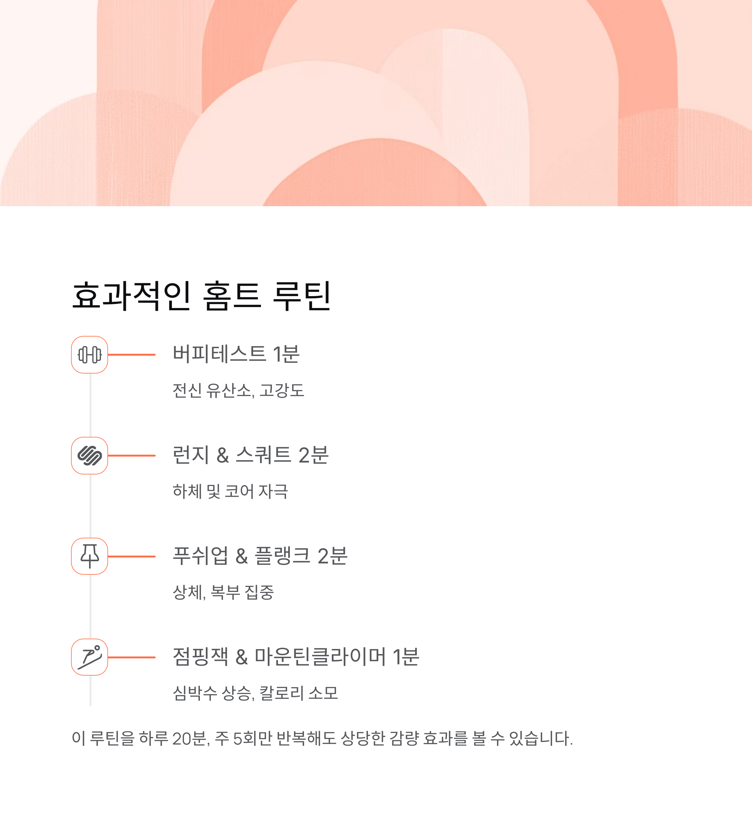 이 루틴을 하루 20분, 주 5회만 반복해도 상당한 감량 효과를 볼 수 있습니다